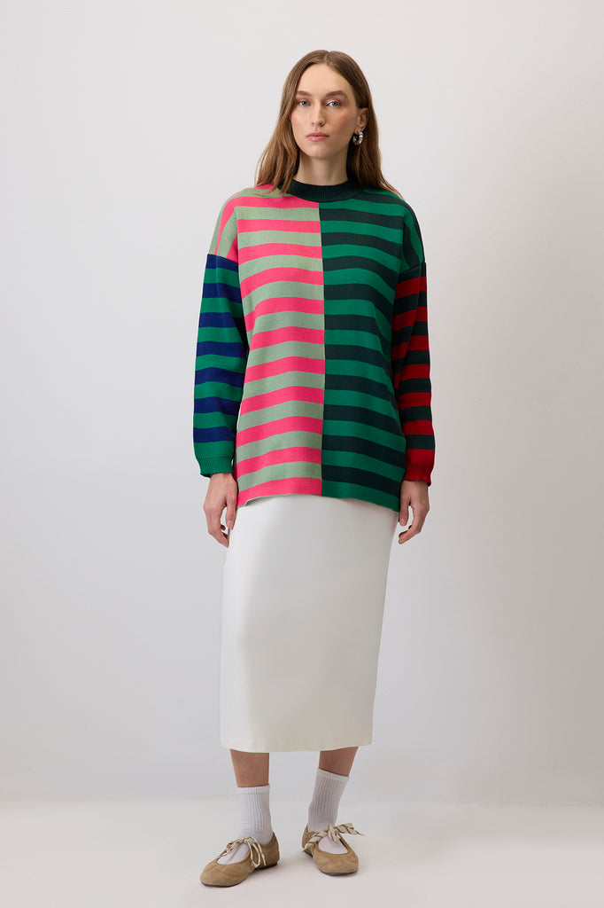 STRIPED KNITWEAR SKIRT WITH ELASTIC WAIST