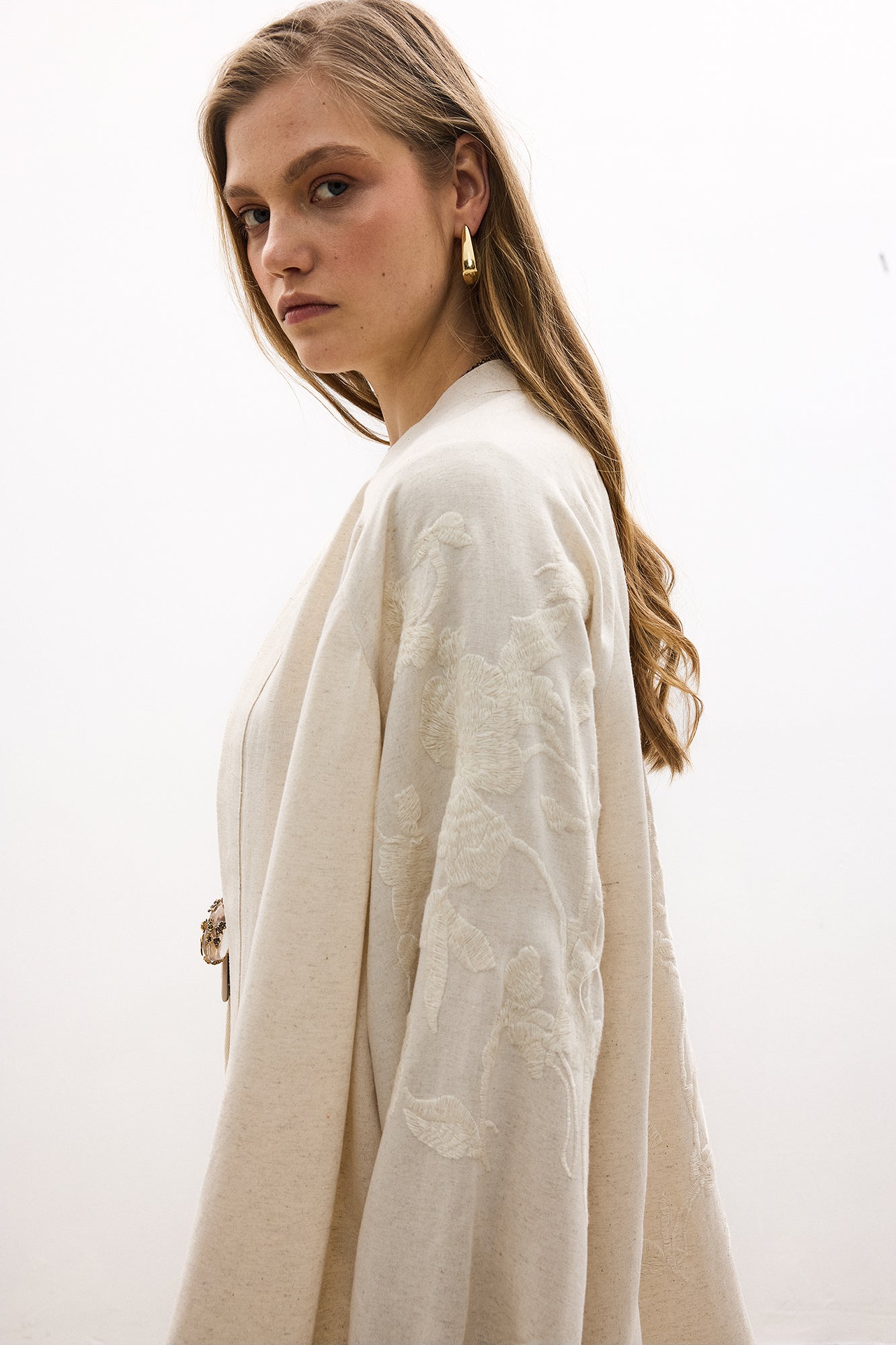 LINEN KIMONO WITH EMBROIDERY DETAILS