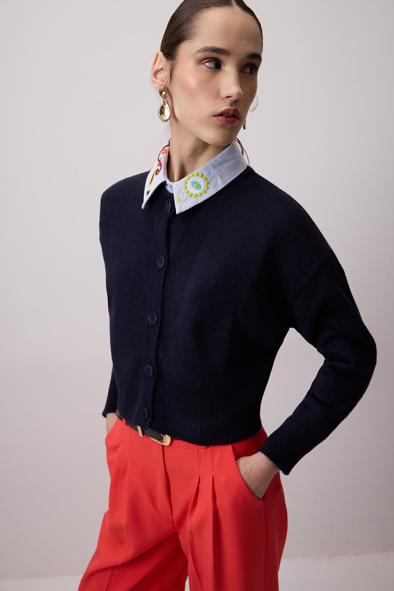 BUTTONED CROP KNIT CARDIGAN