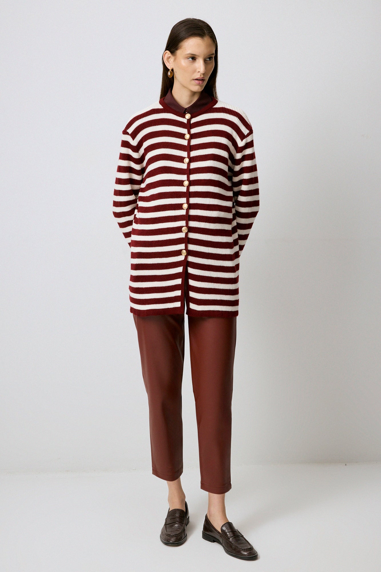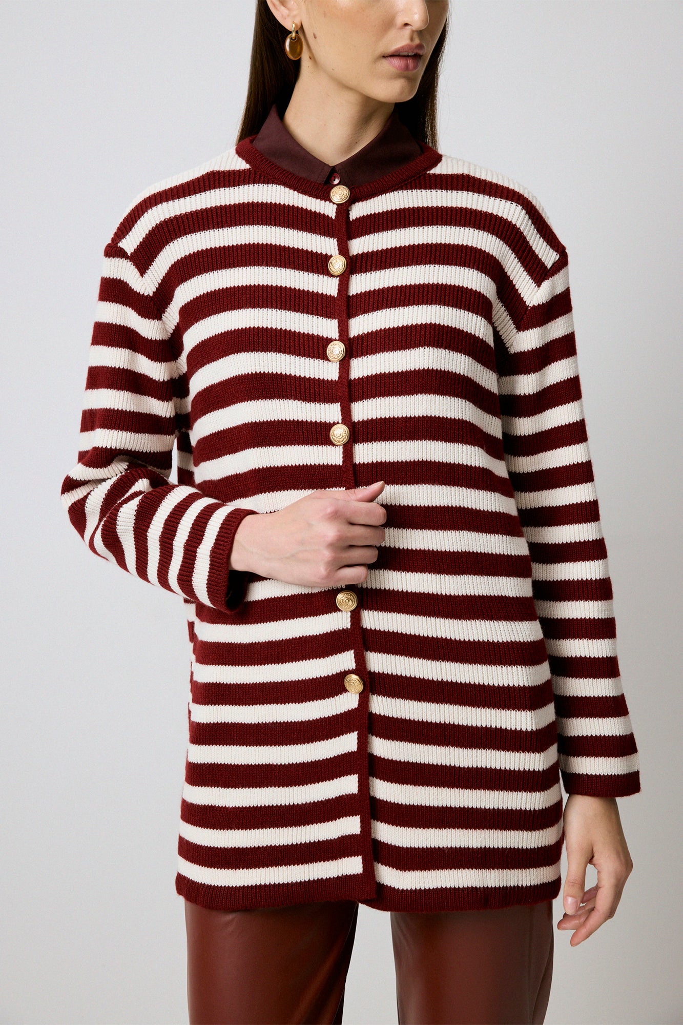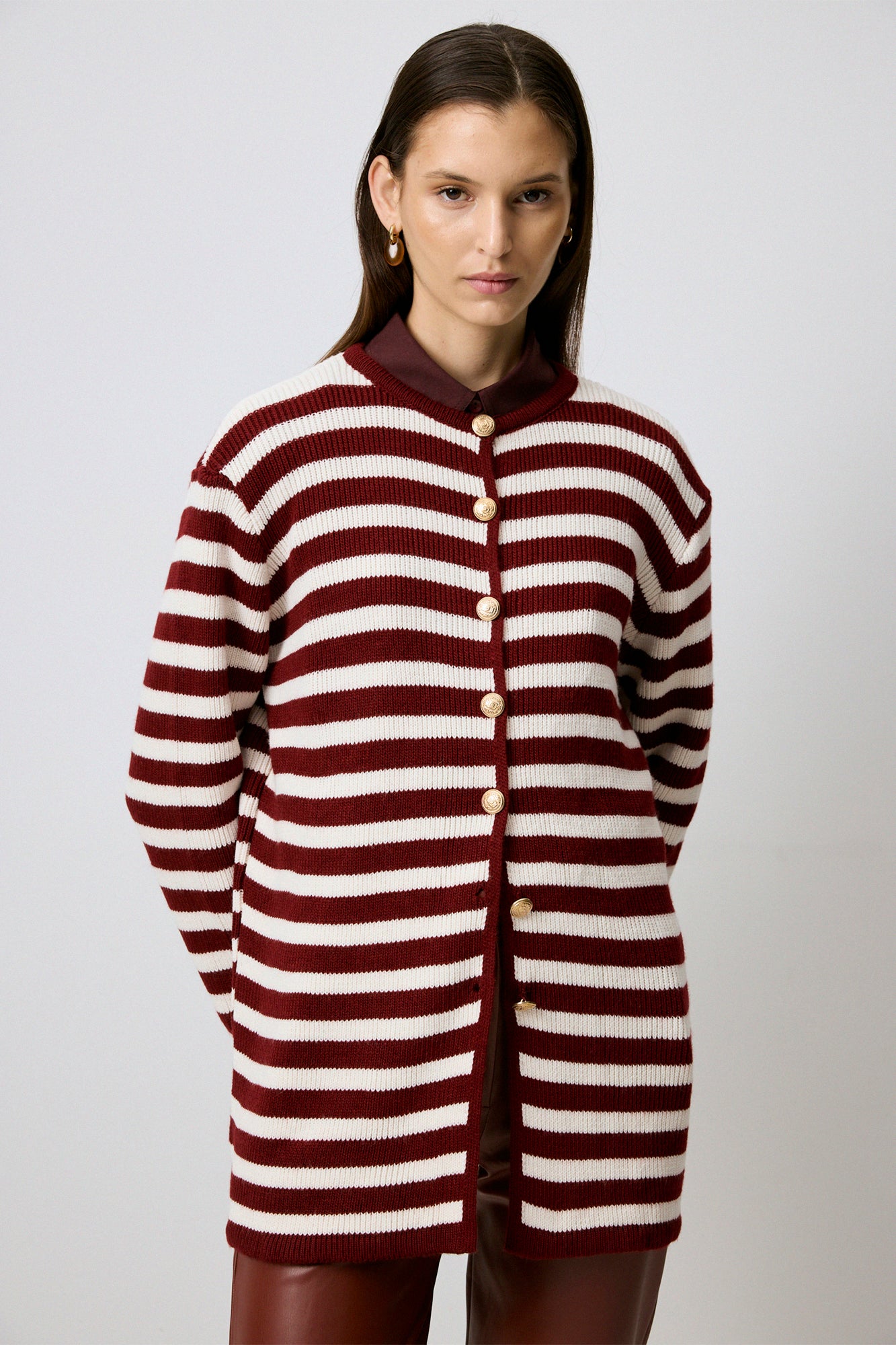 STRIPED LONG CARDIGAN WITH GOLD BUTTONS