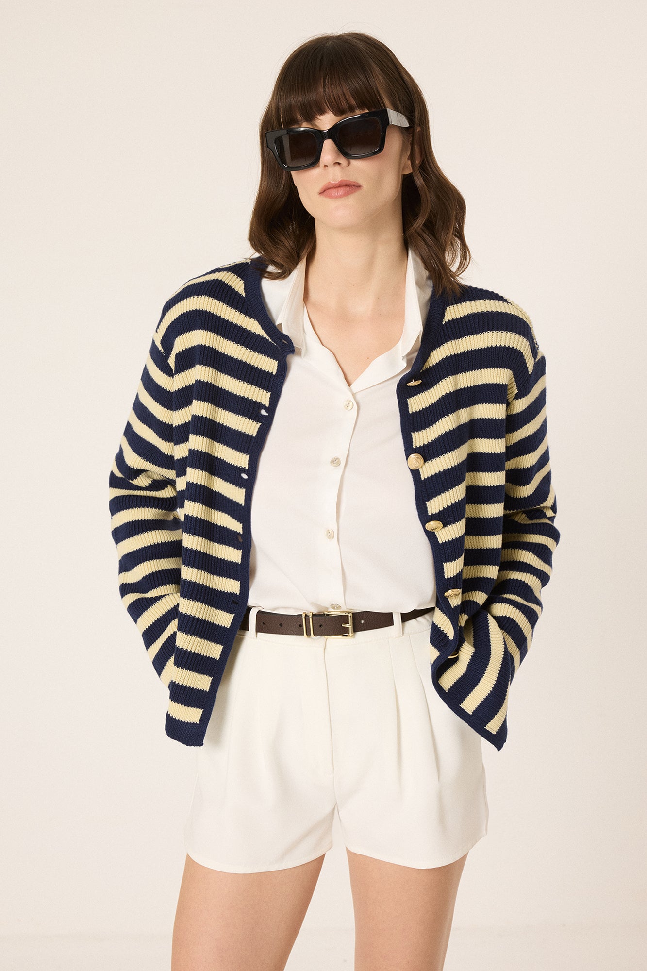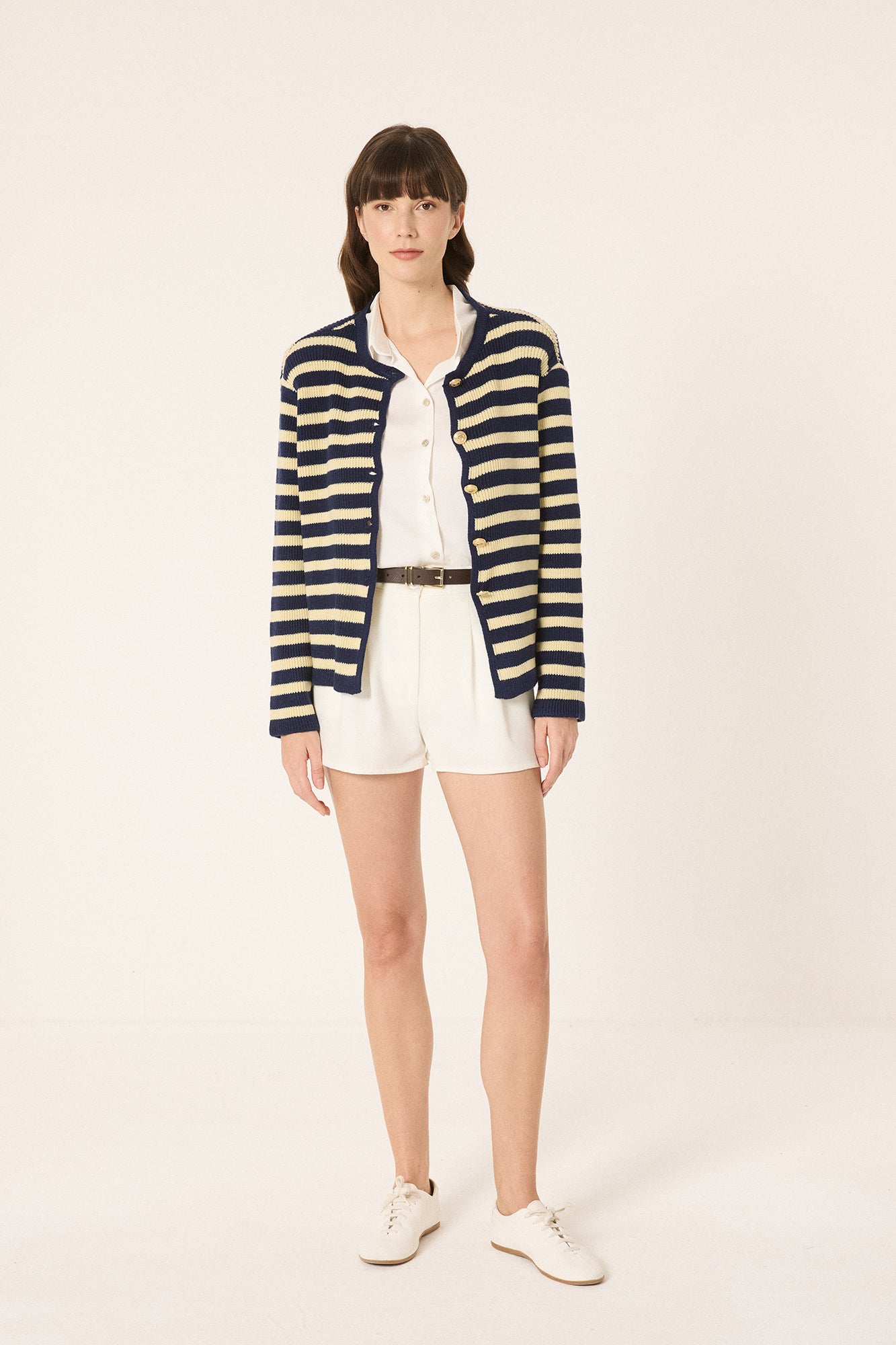 STRIPED SHORT CARDIGAN WITH GOLD BUTTONS