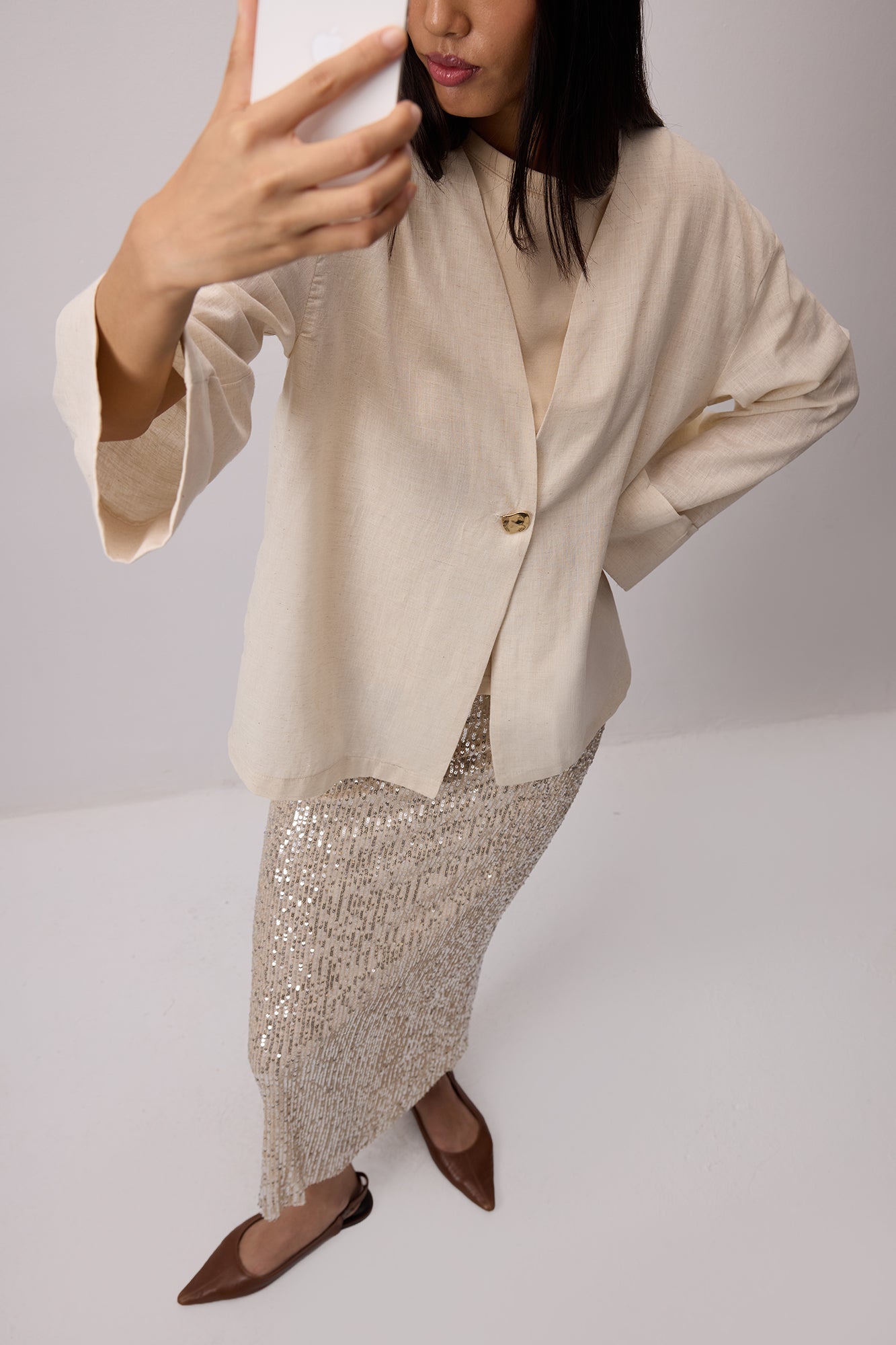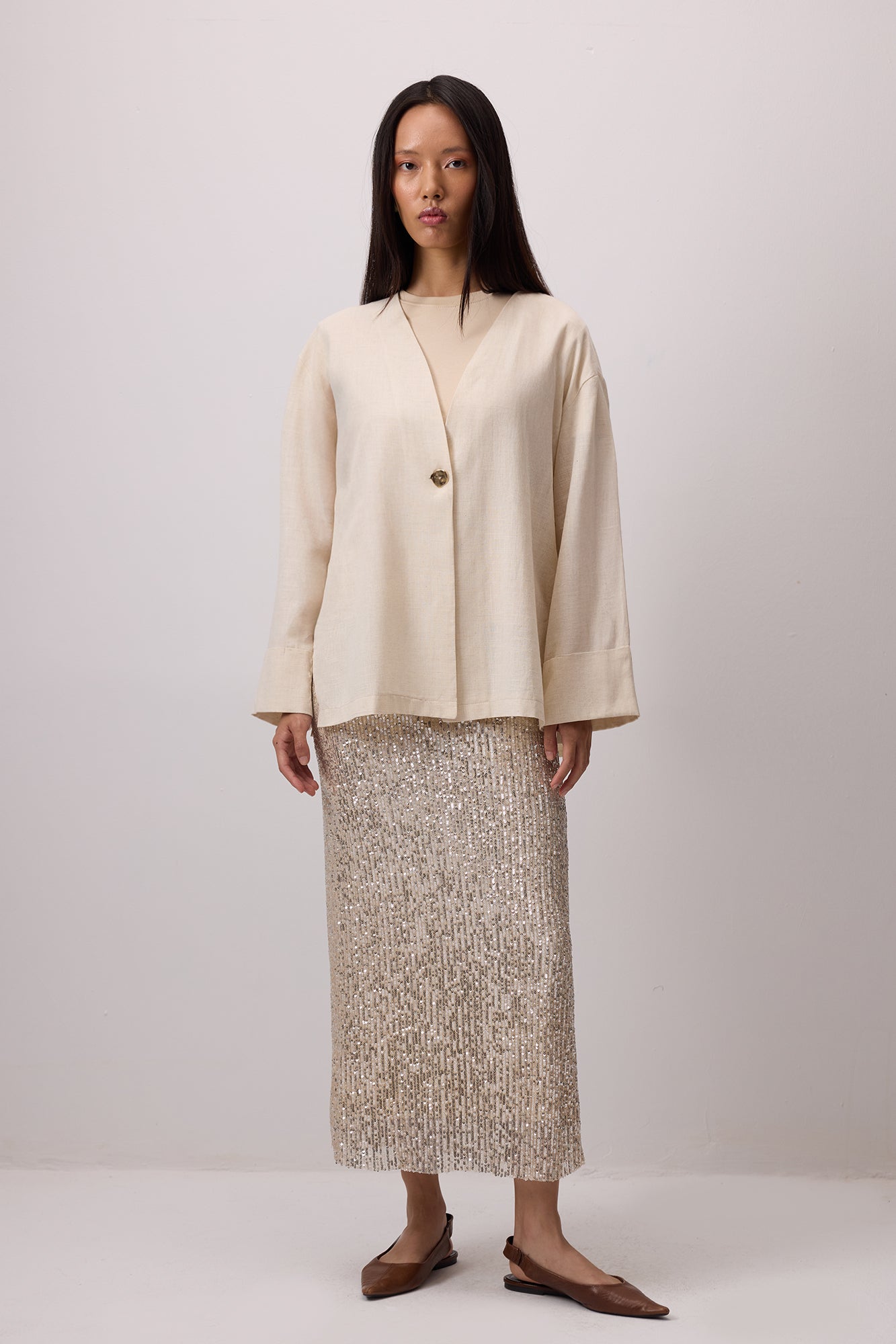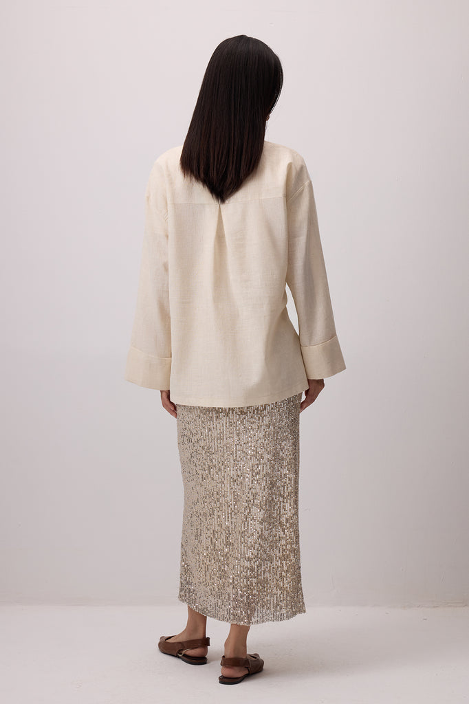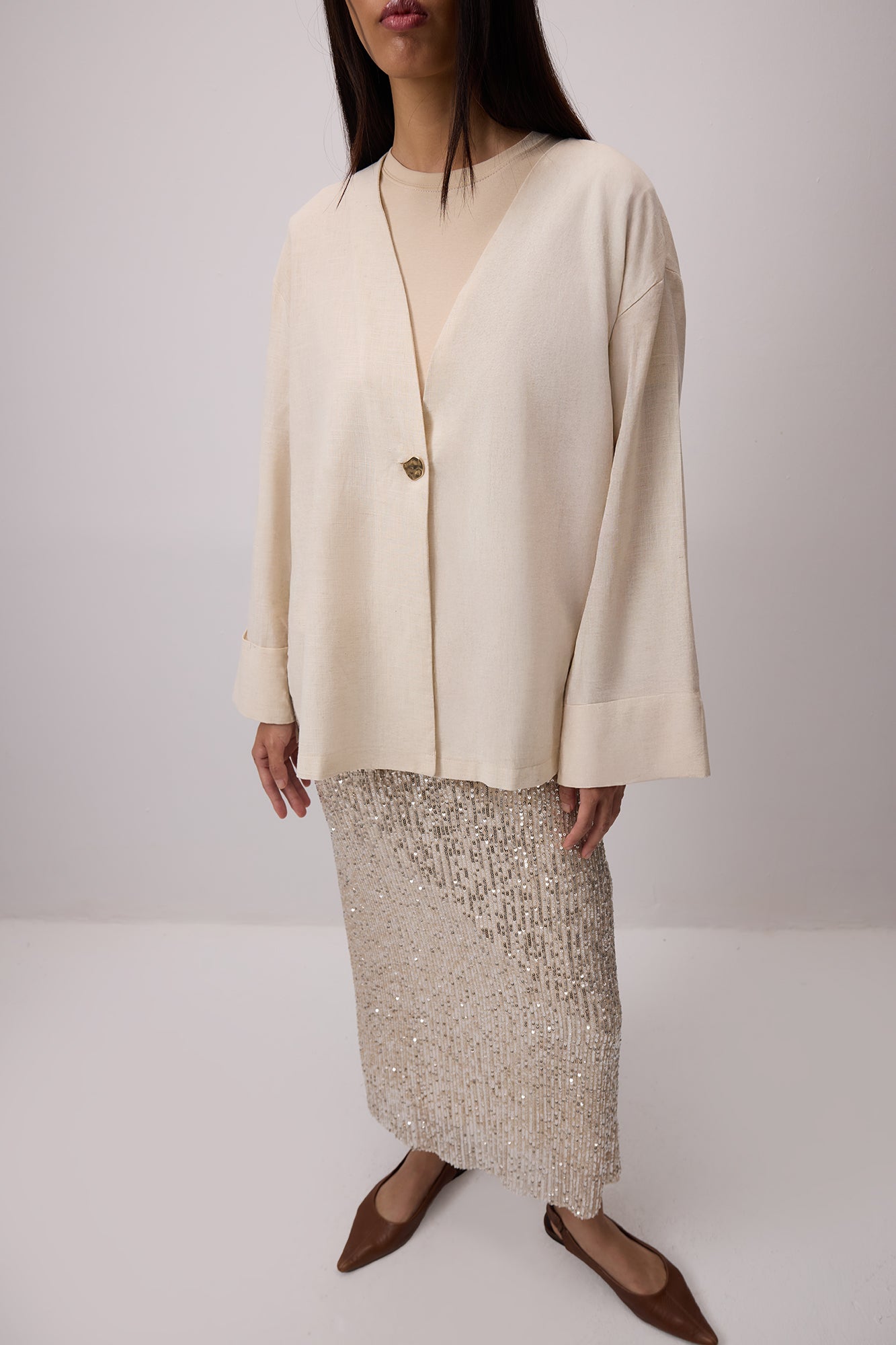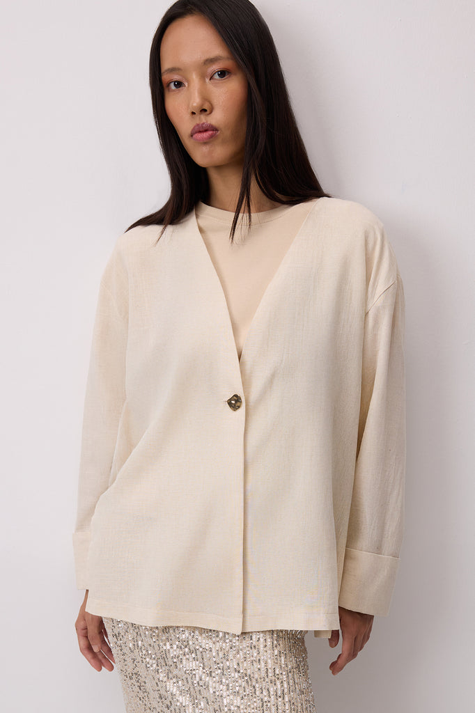 LINEN TEXTURED BUTTONED JACKET