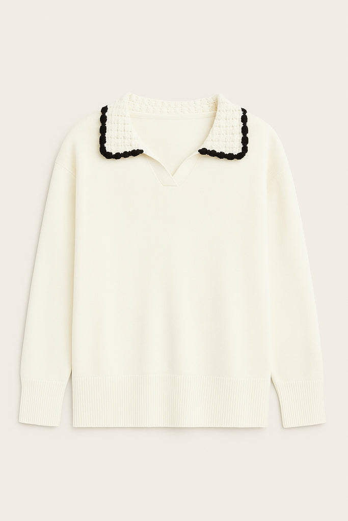 KNITWEAR SWEATER WITH EMBROIDERED DETAILED ON THE COLLAR