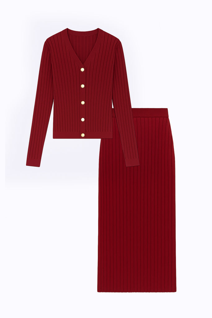 KNIT CARDIGAN AND TROUSERS SET