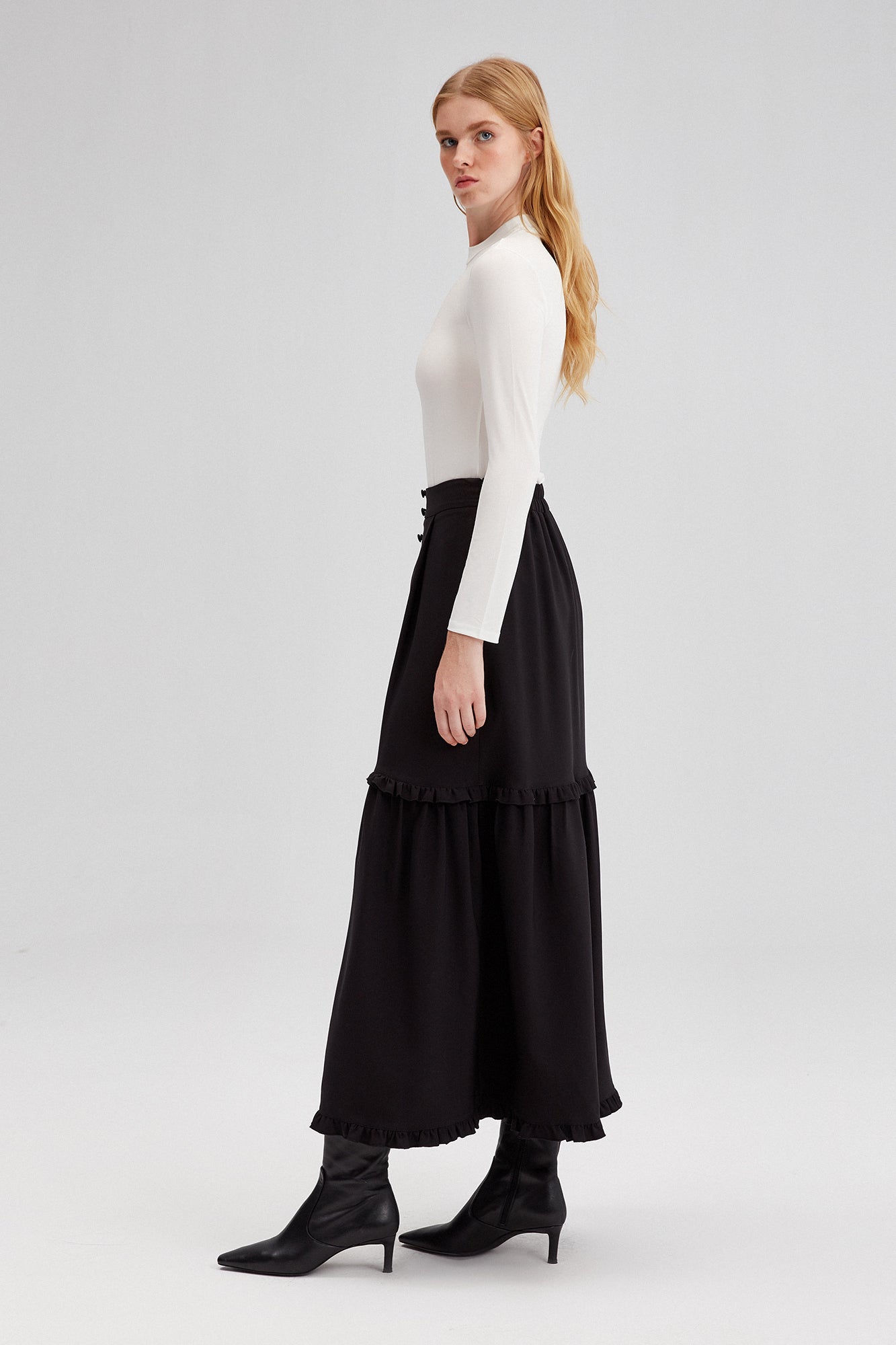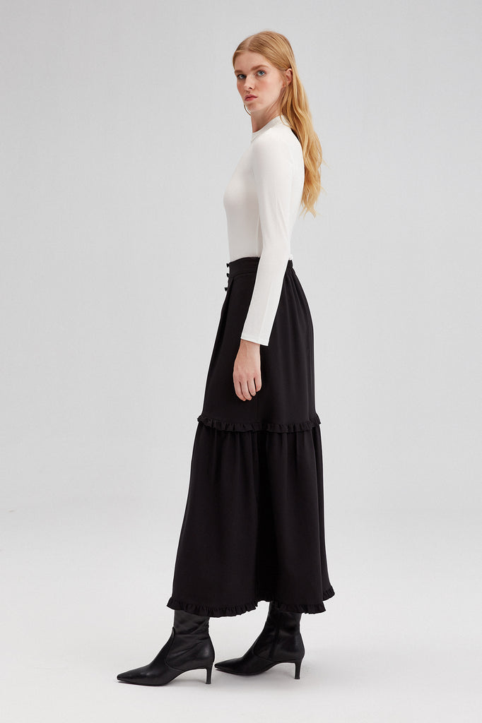 HIGH WAISTED RUFFLED CREPE SKIRT