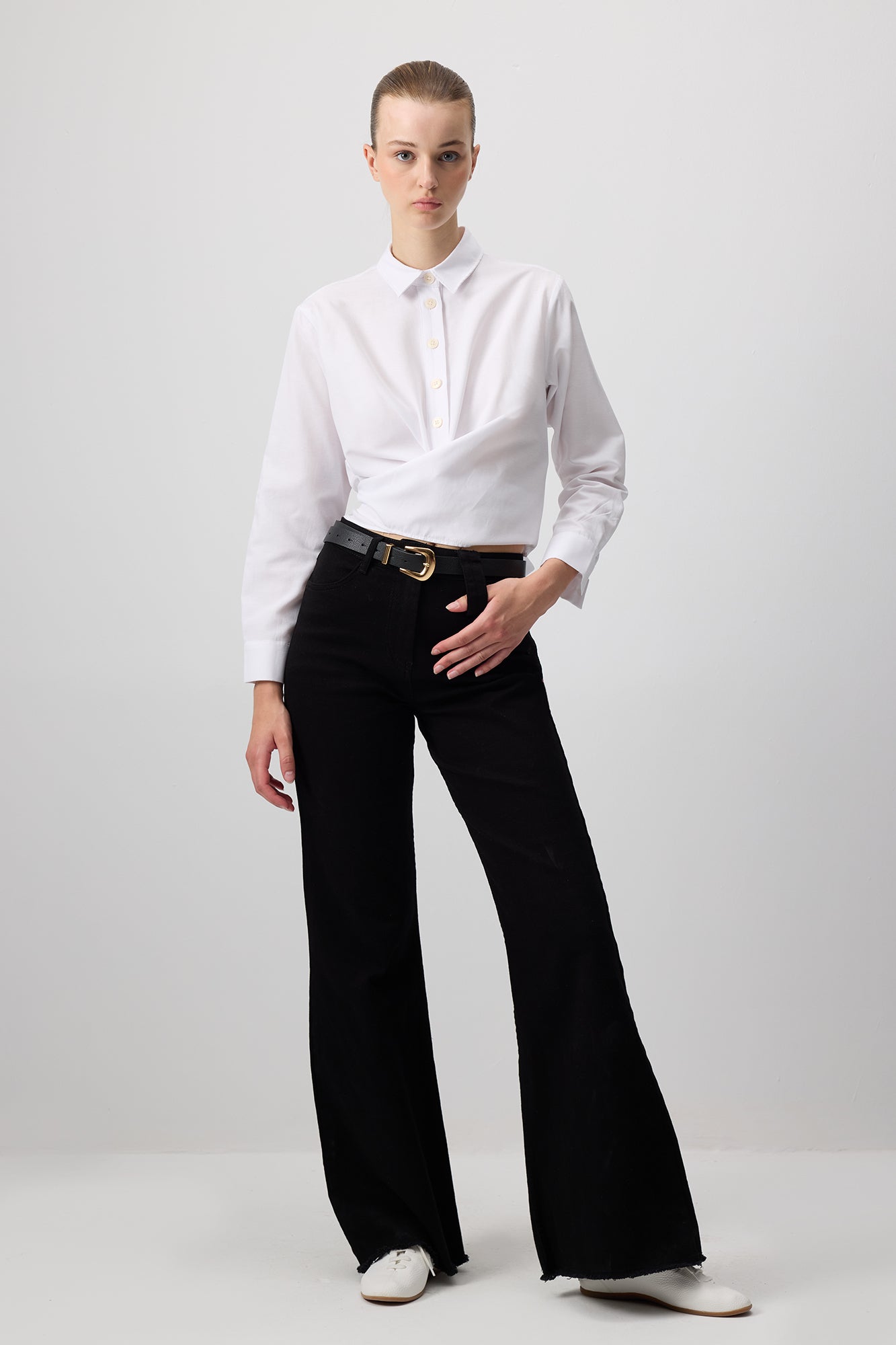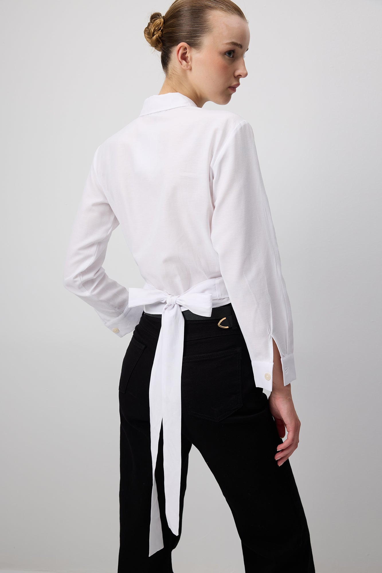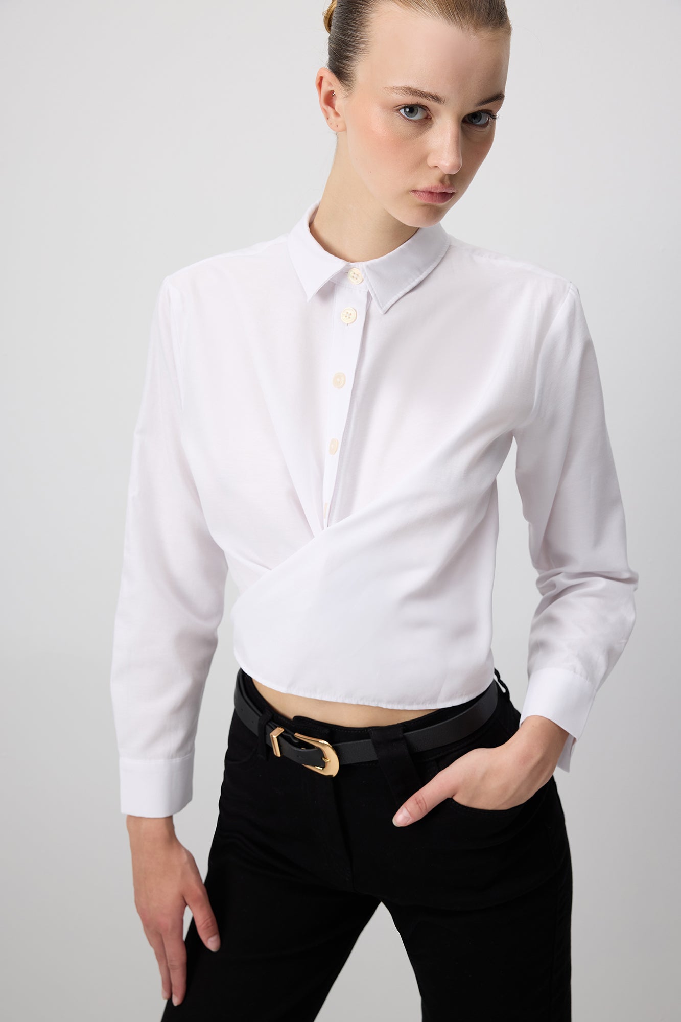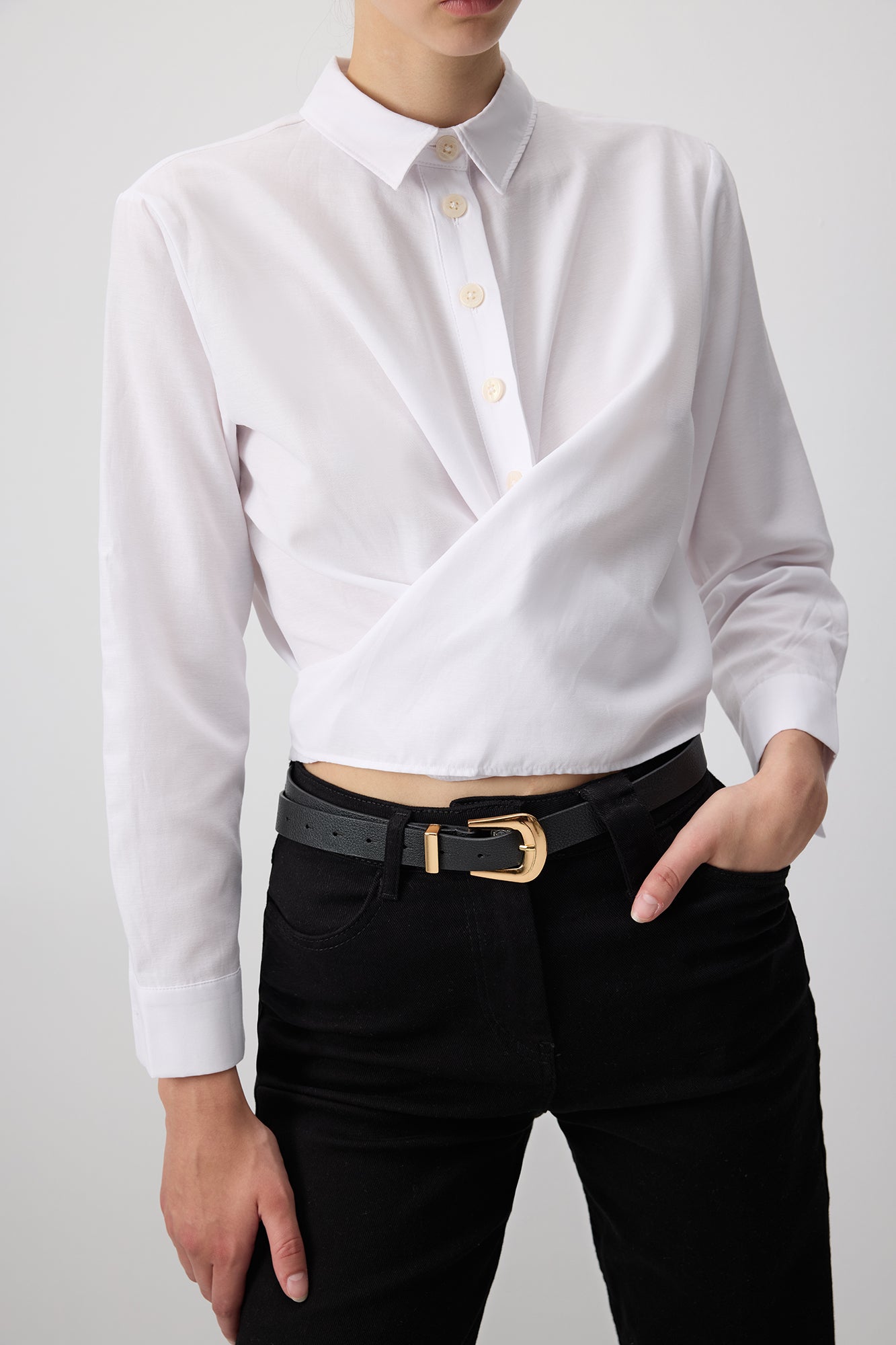 BELTED SHORT POPLIN SHIRT