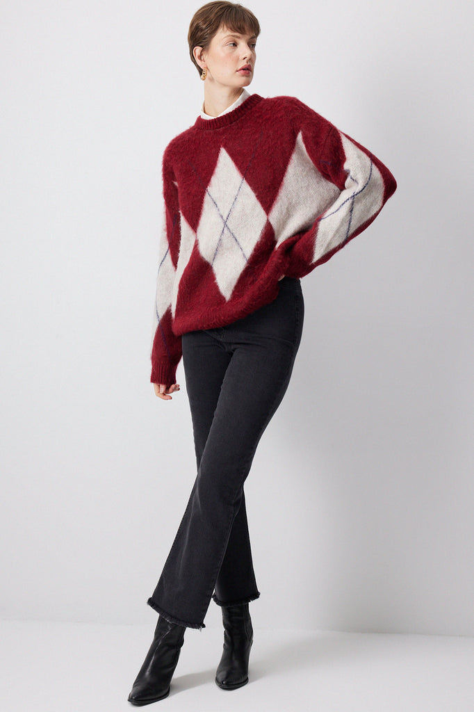 DIAMOND PATTERNED KNIT SWEATER