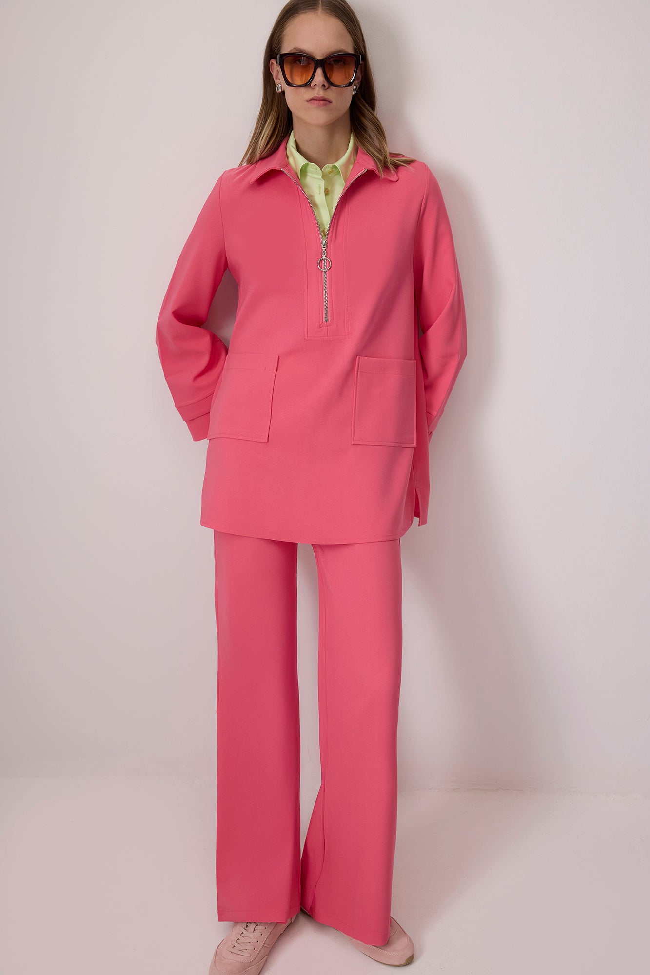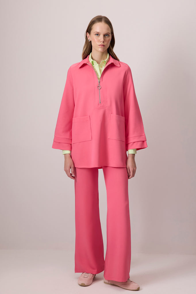 ZIPPERED TUNIC TROUSERS CREPE SET