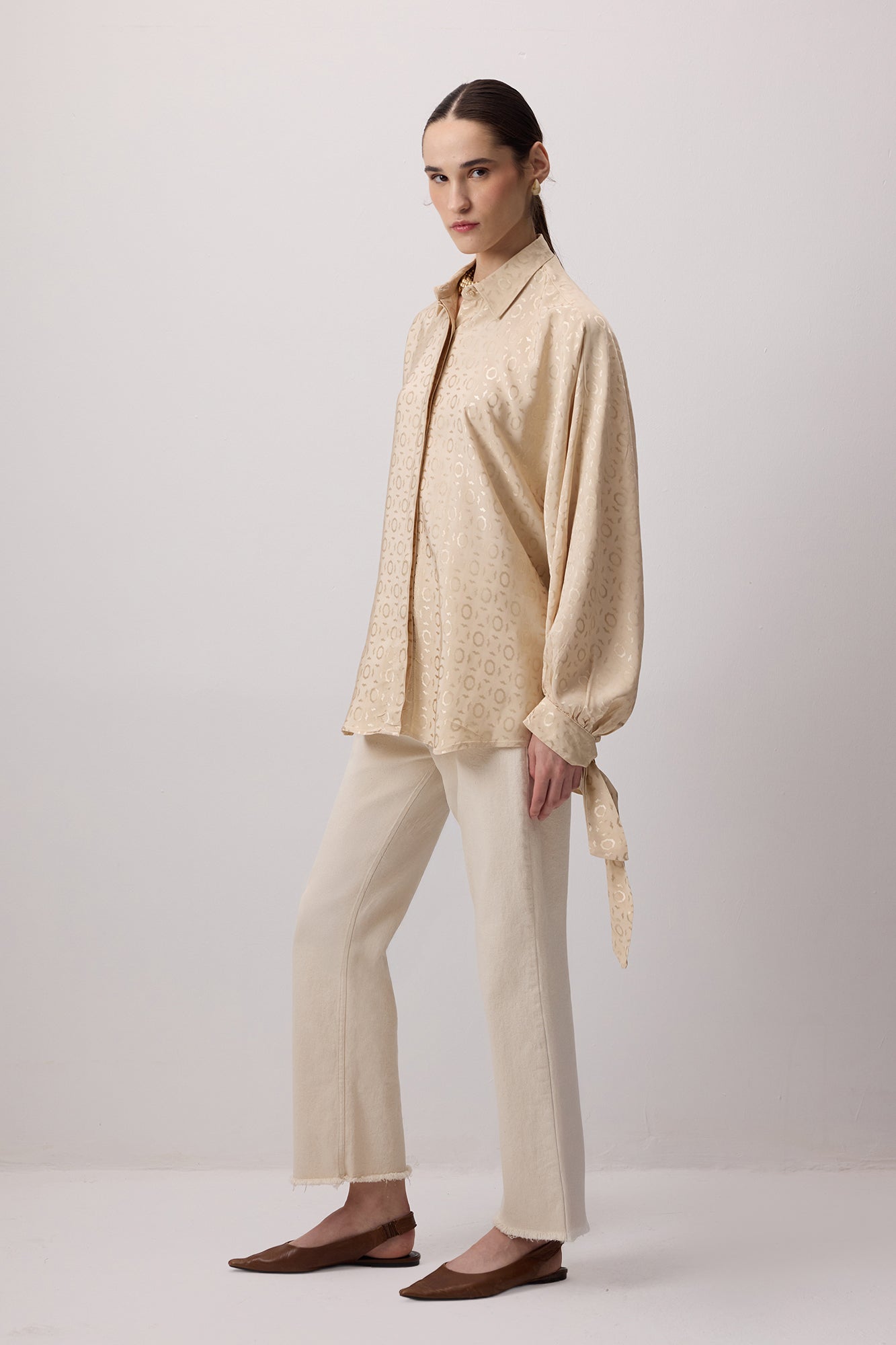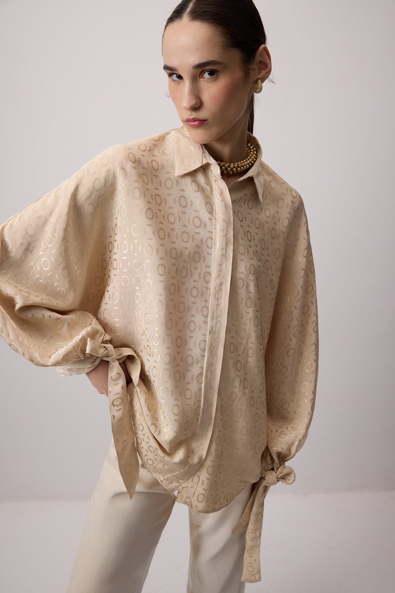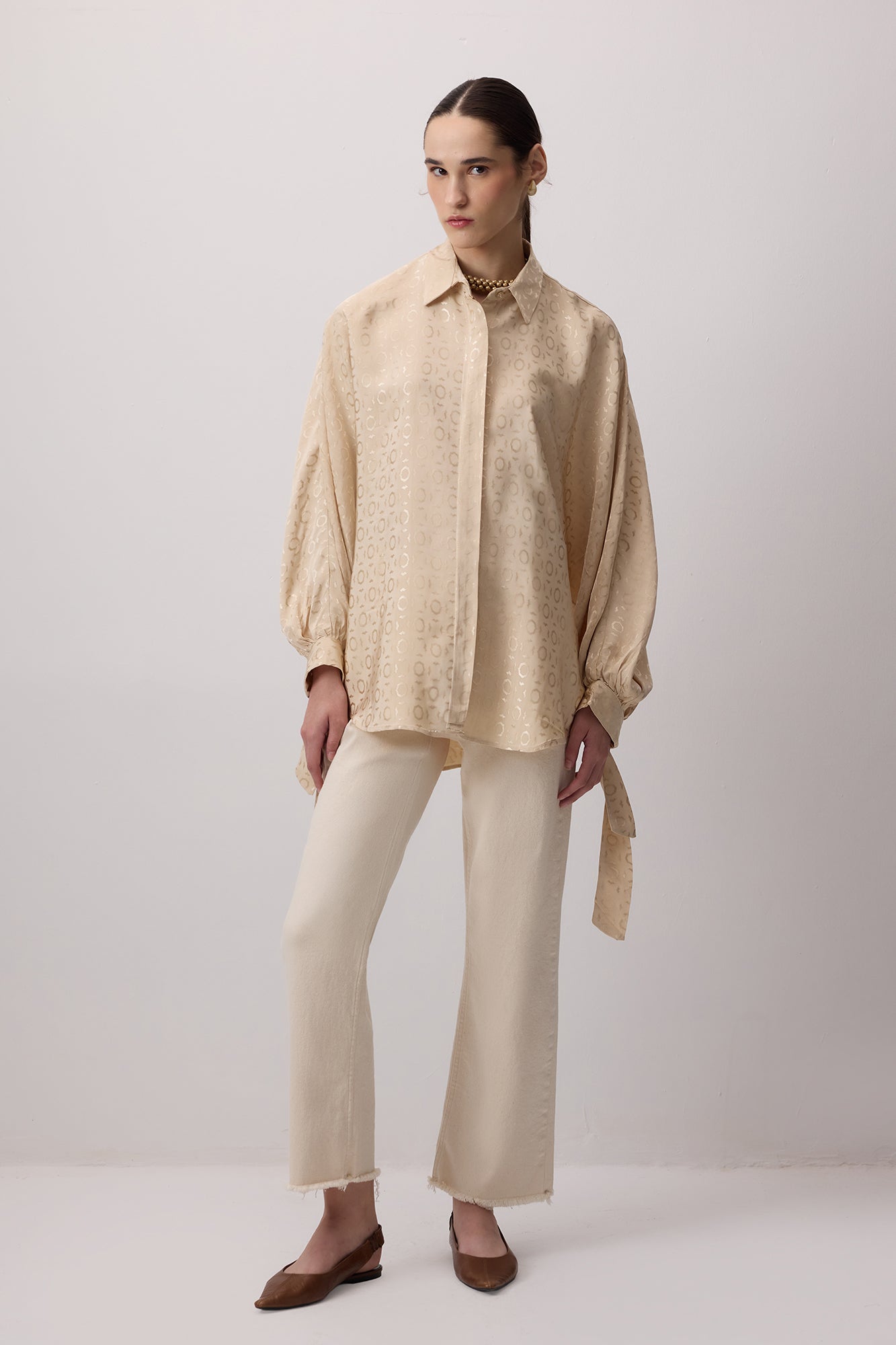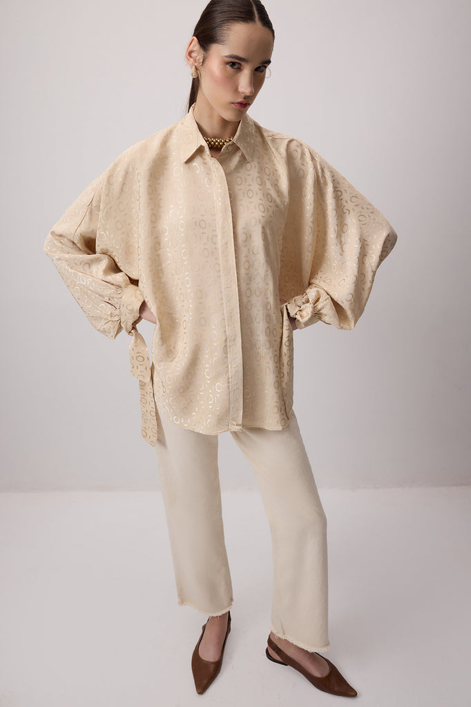 JACQUARD BALLOON SLEEVE SHIRT