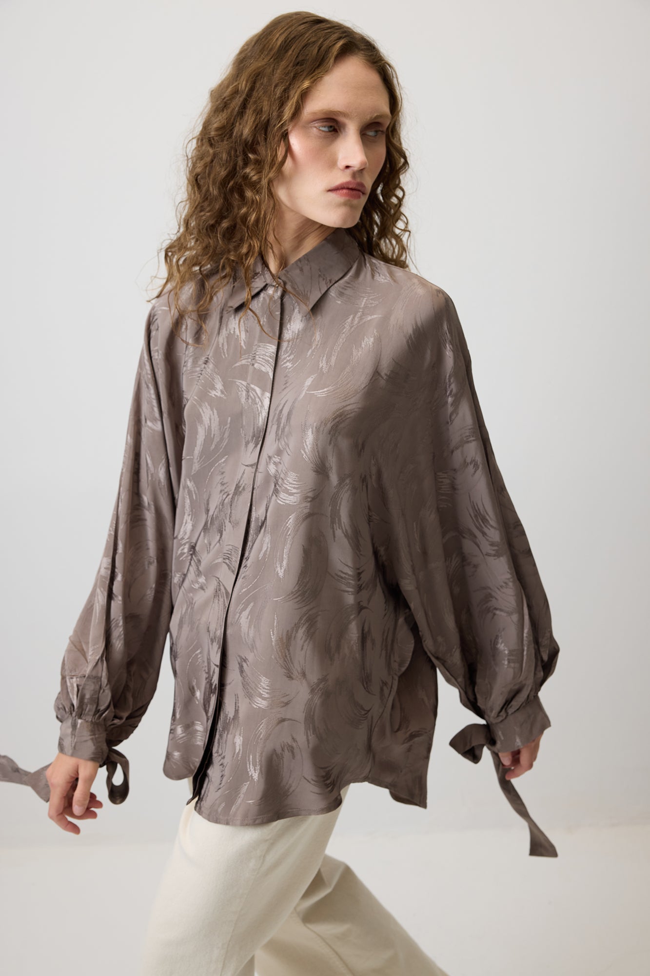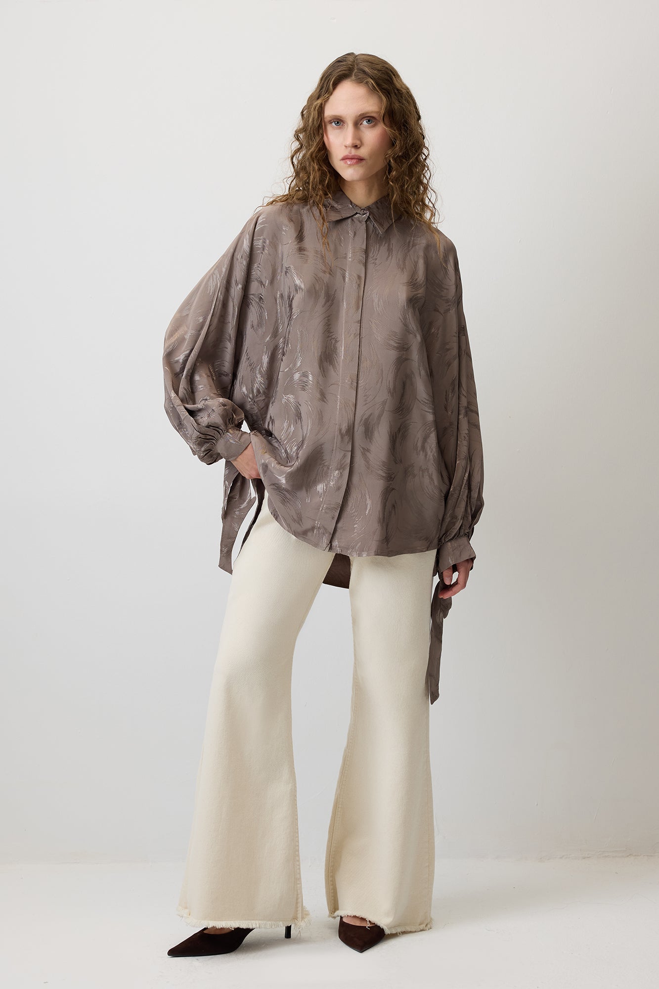 JACQUARD BALLOON SLEEVE SHIRT
