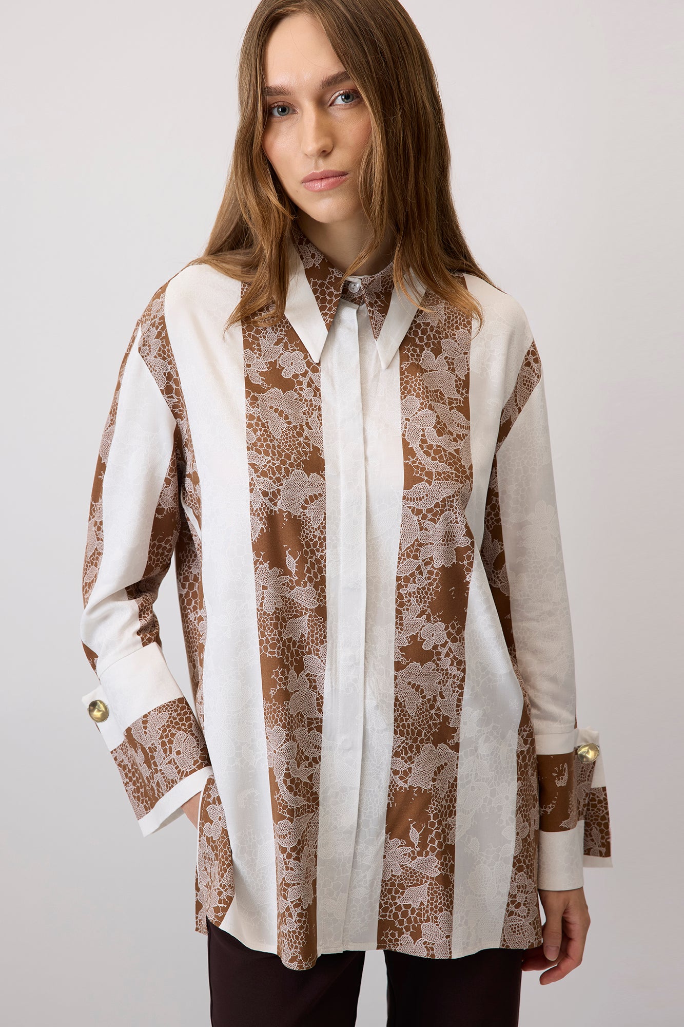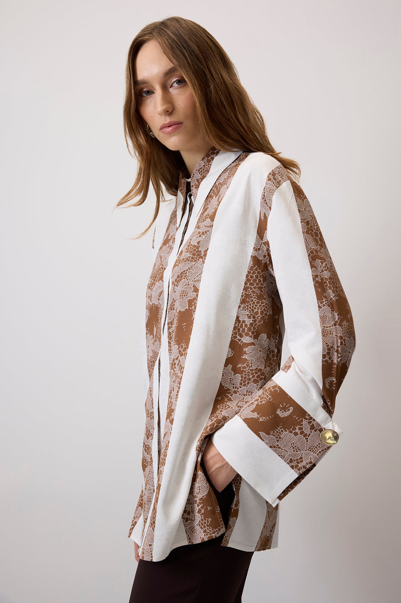 LACE PATTERN BHIRT WITH WIDE CUFFS