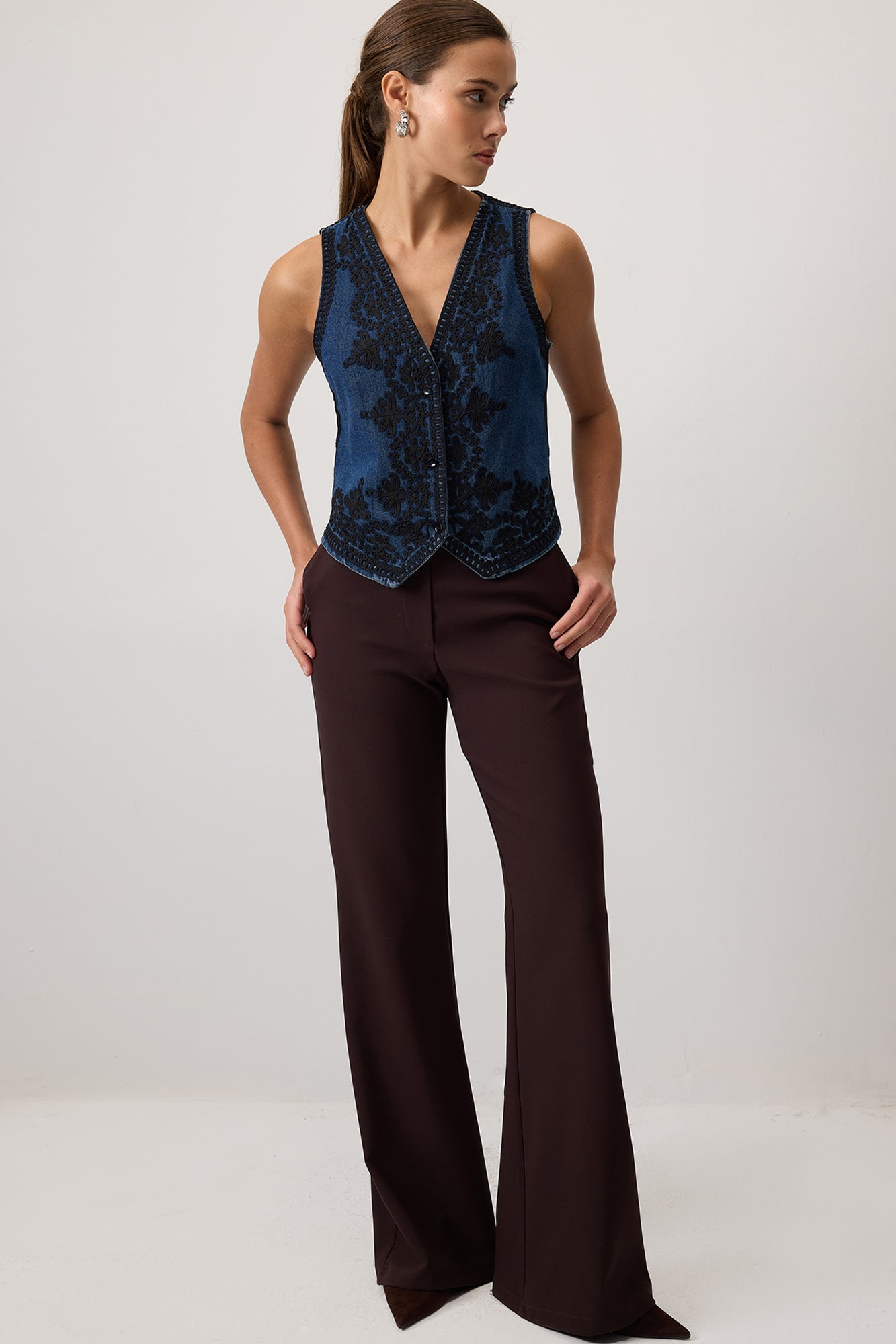 EMBROIDERED DENIM VEST