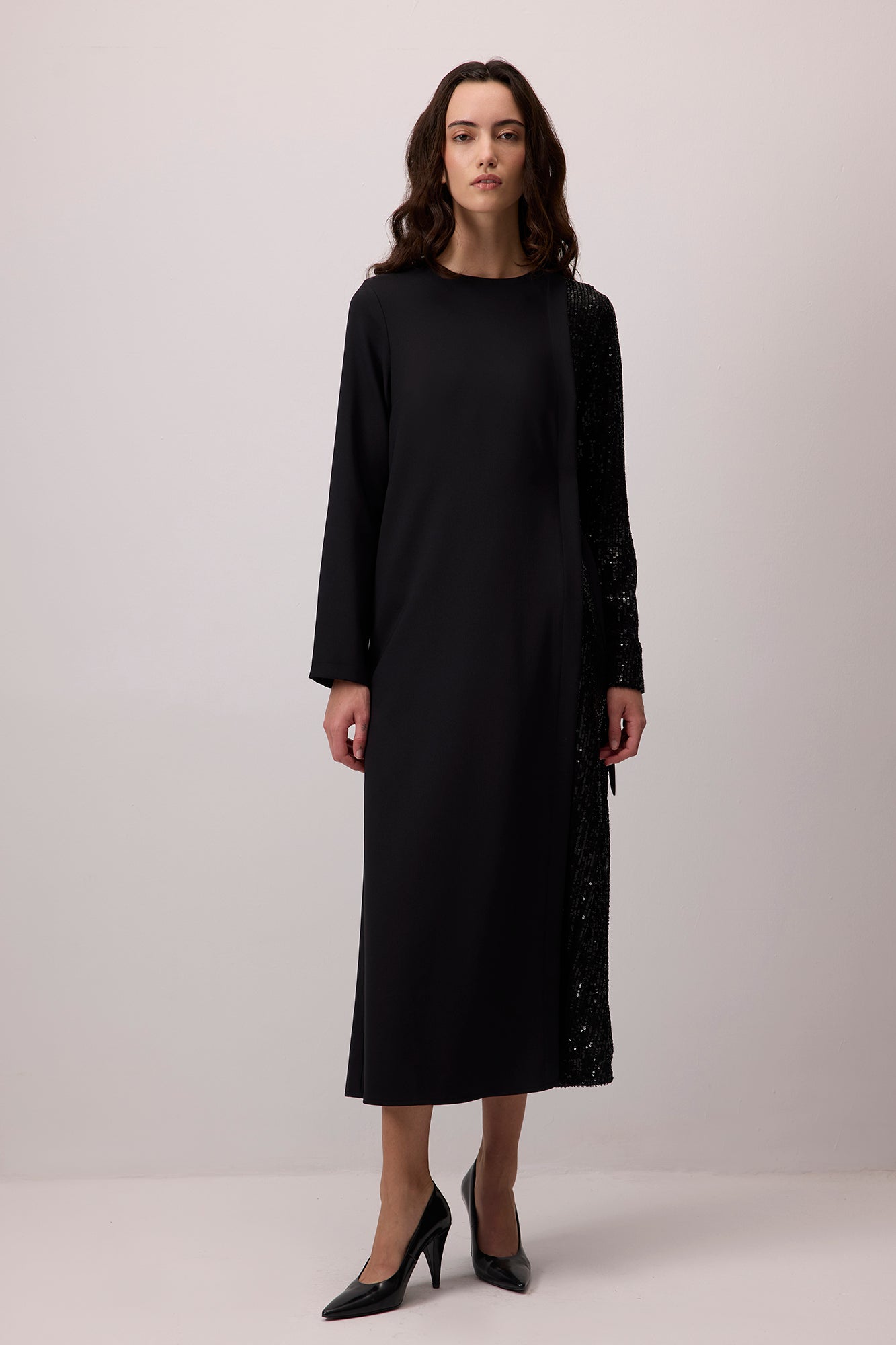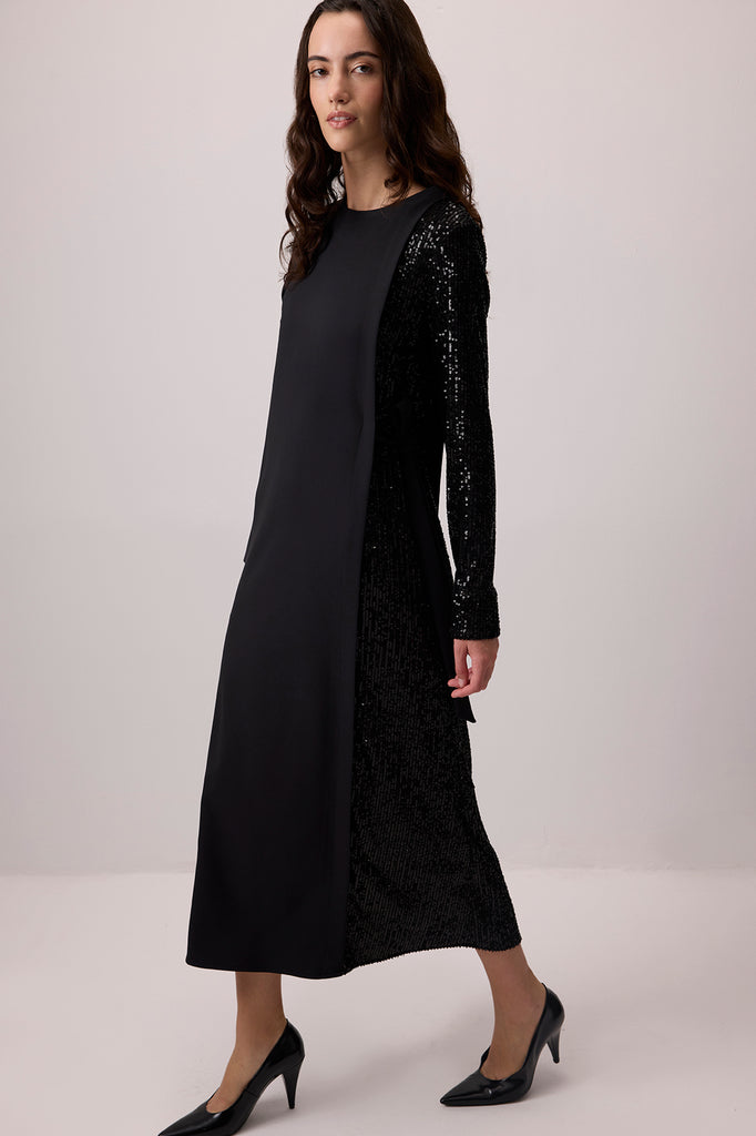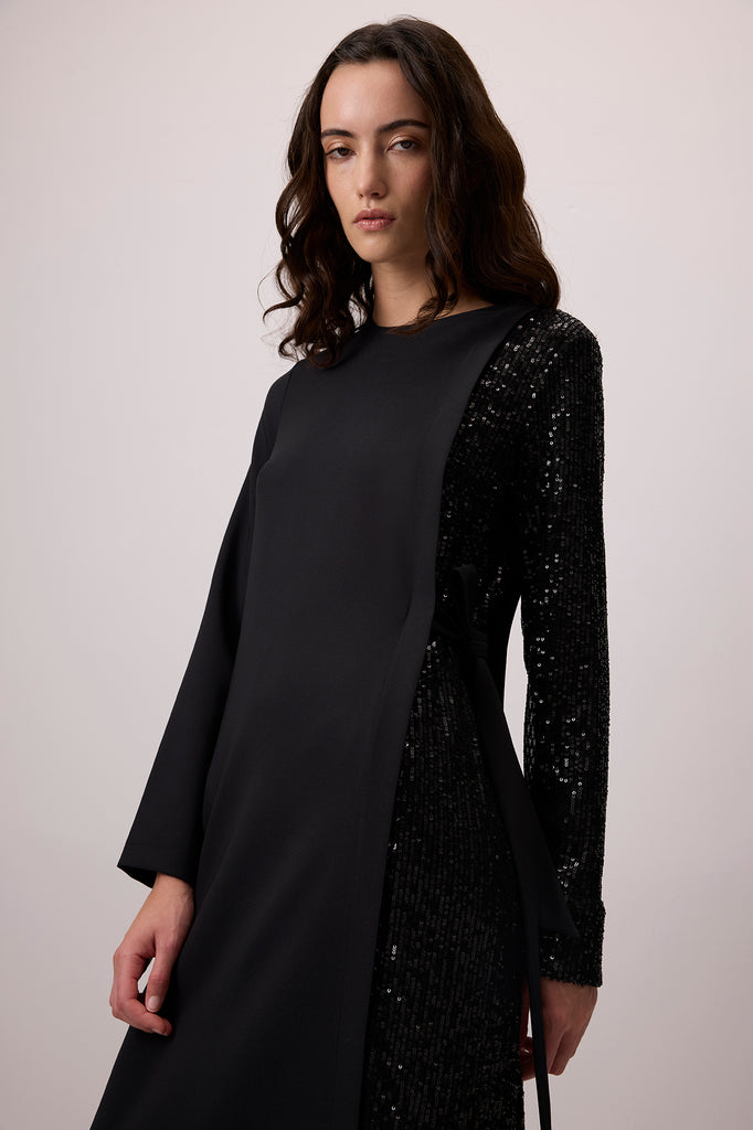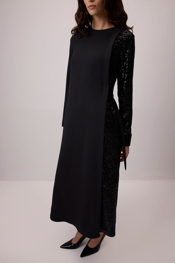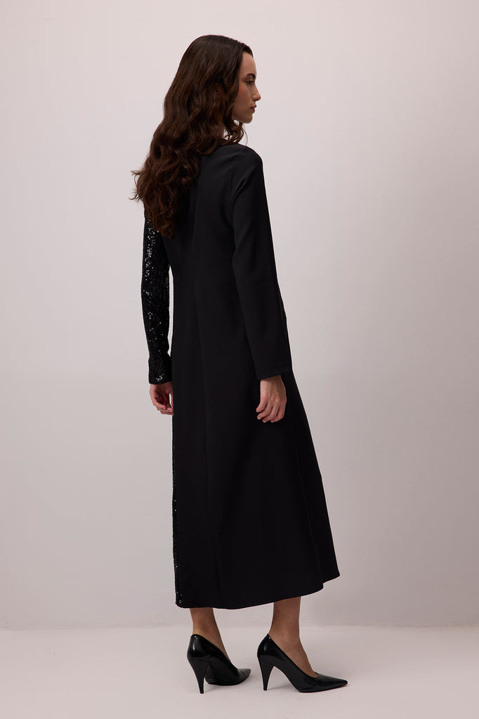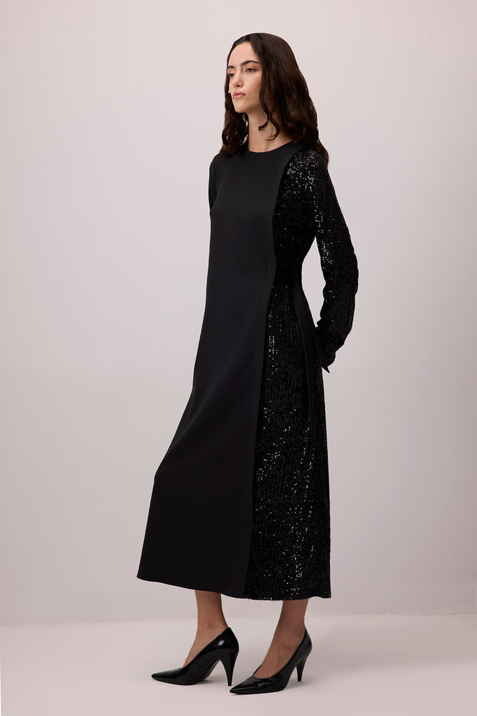 CONTRAST SEQUIN CREPE DRESS