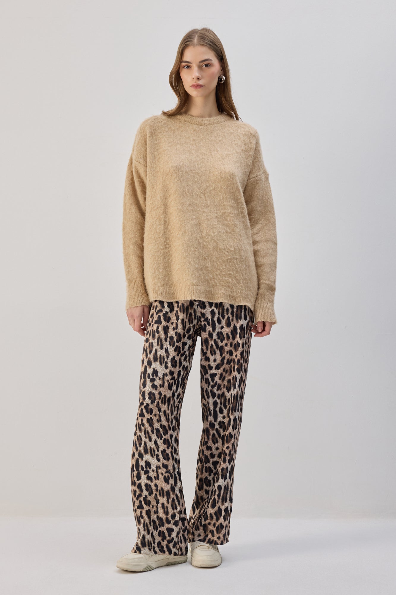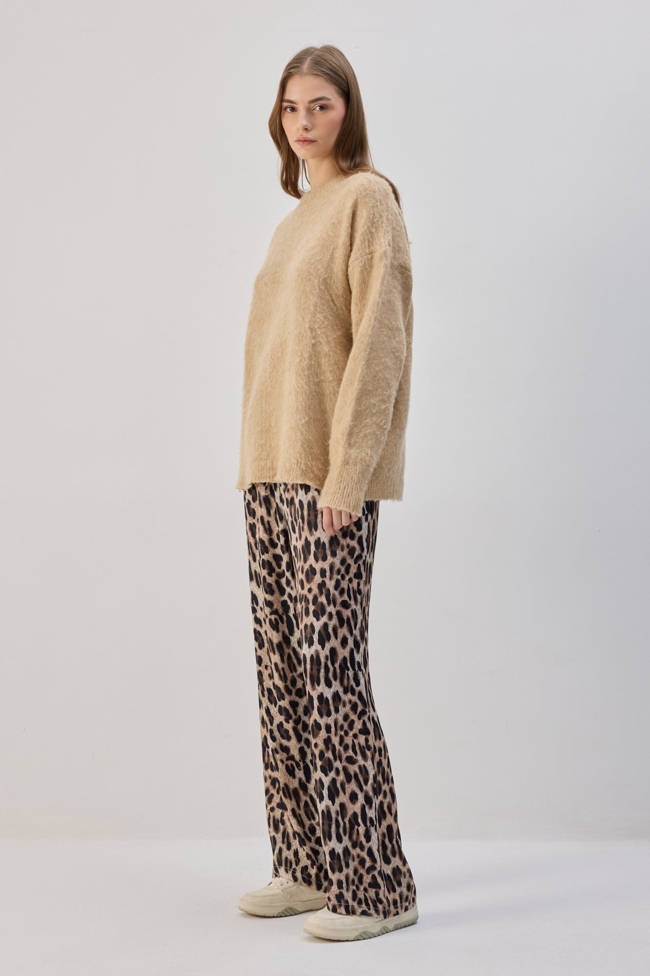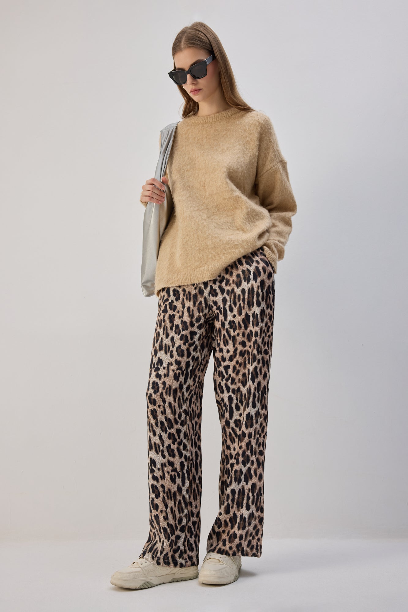 LEOPARD PATTERNED ELASTIC WAIST TROUSERS