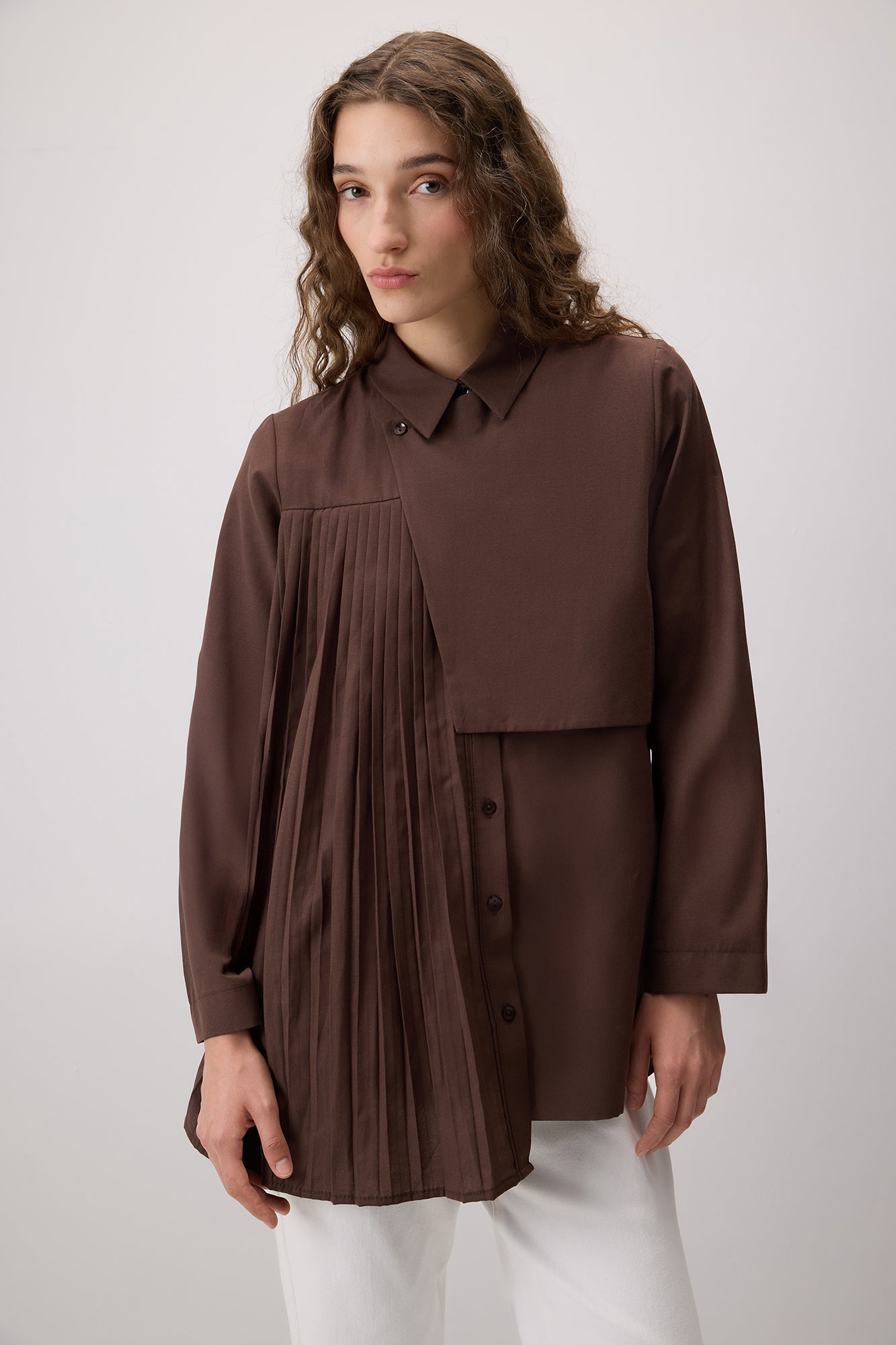 ASYMMETRIC SHIRT WITH PLEAT DETAIL