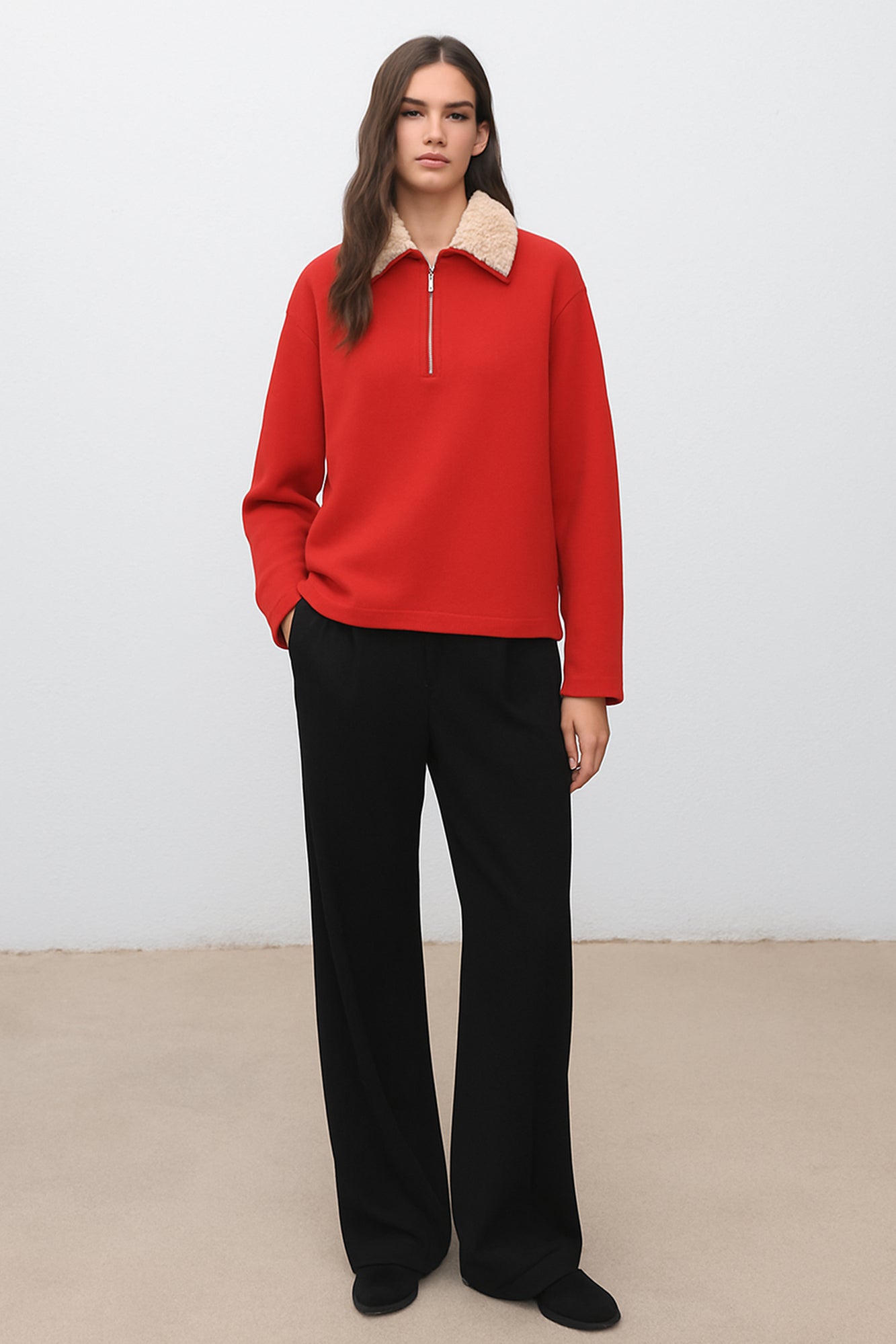 FAUX FUR COLLAR SWEATSHIRT