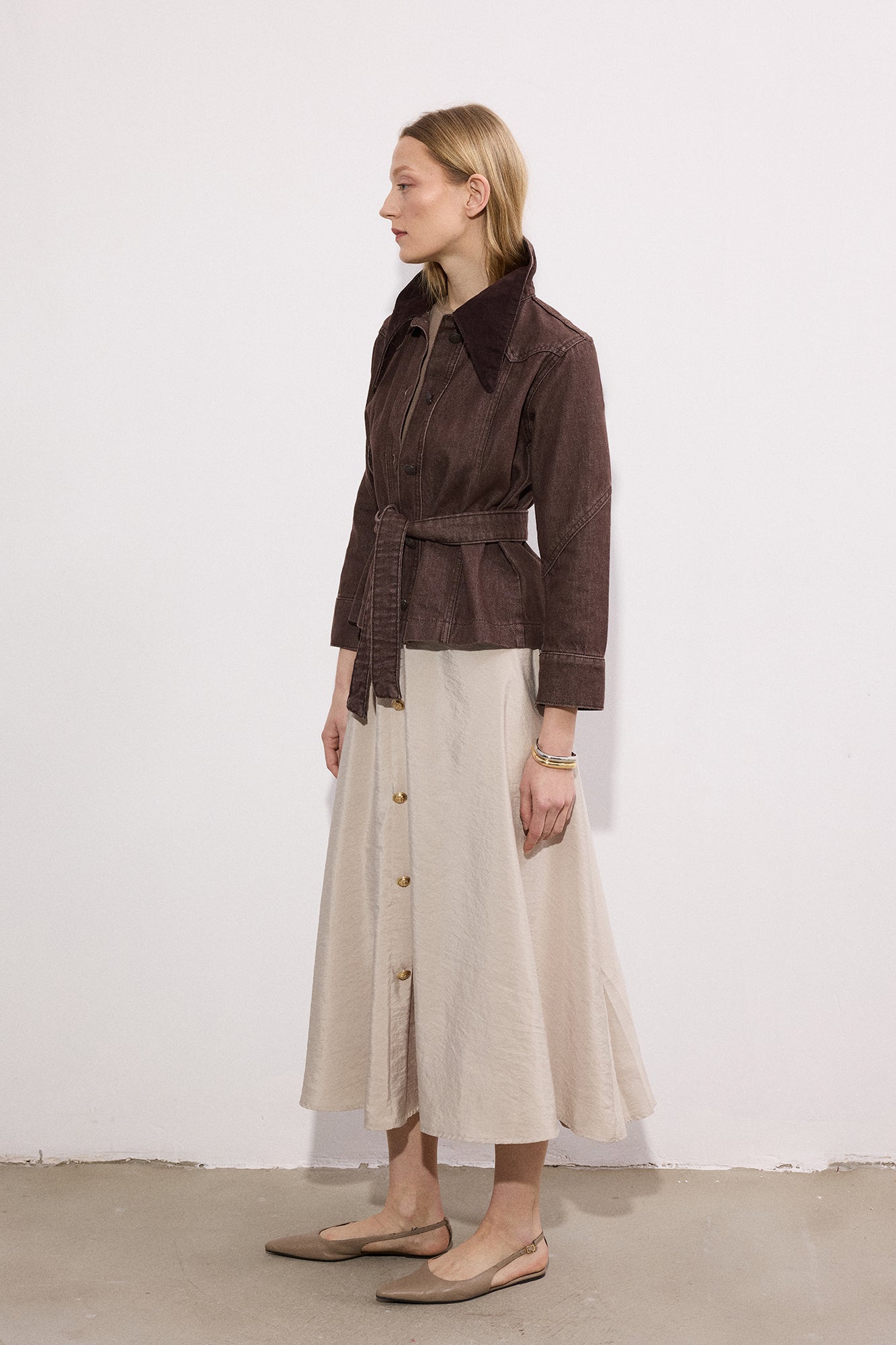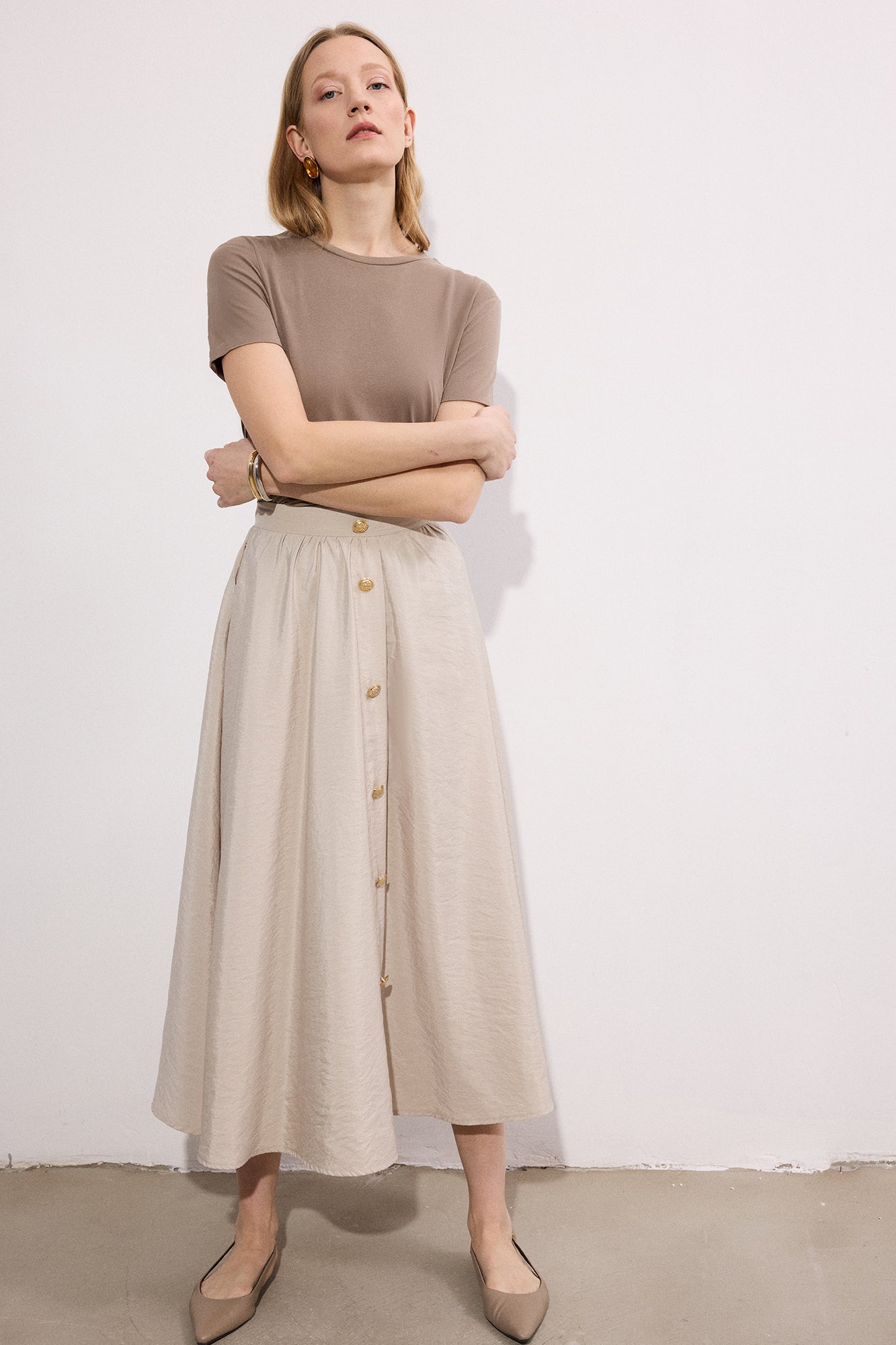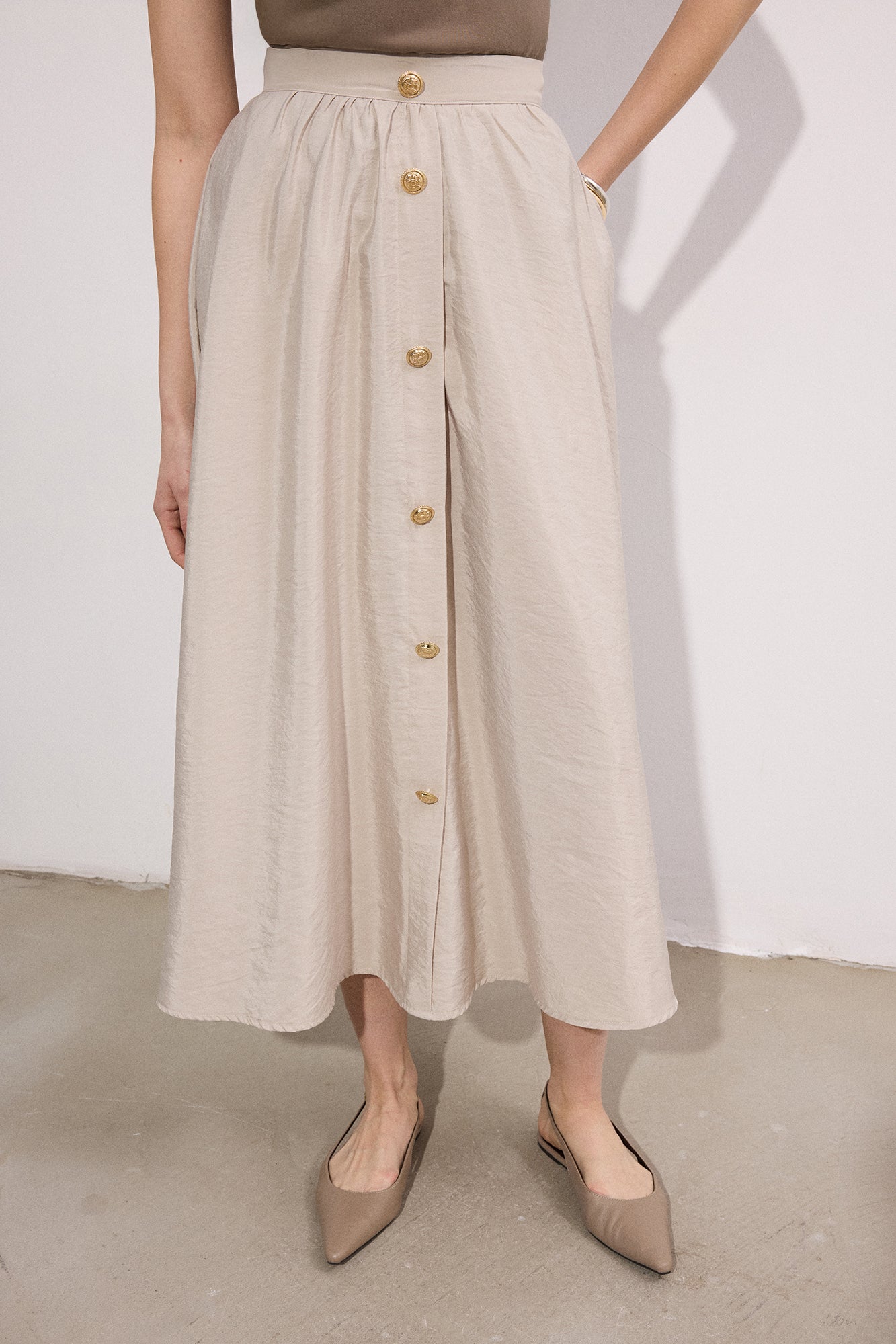 GOLD BUTTONED CUPRA SKIRT