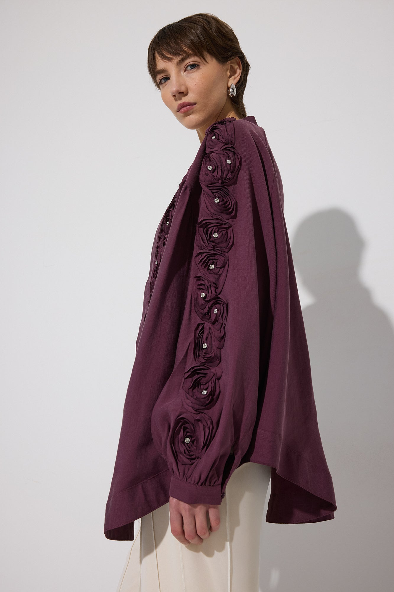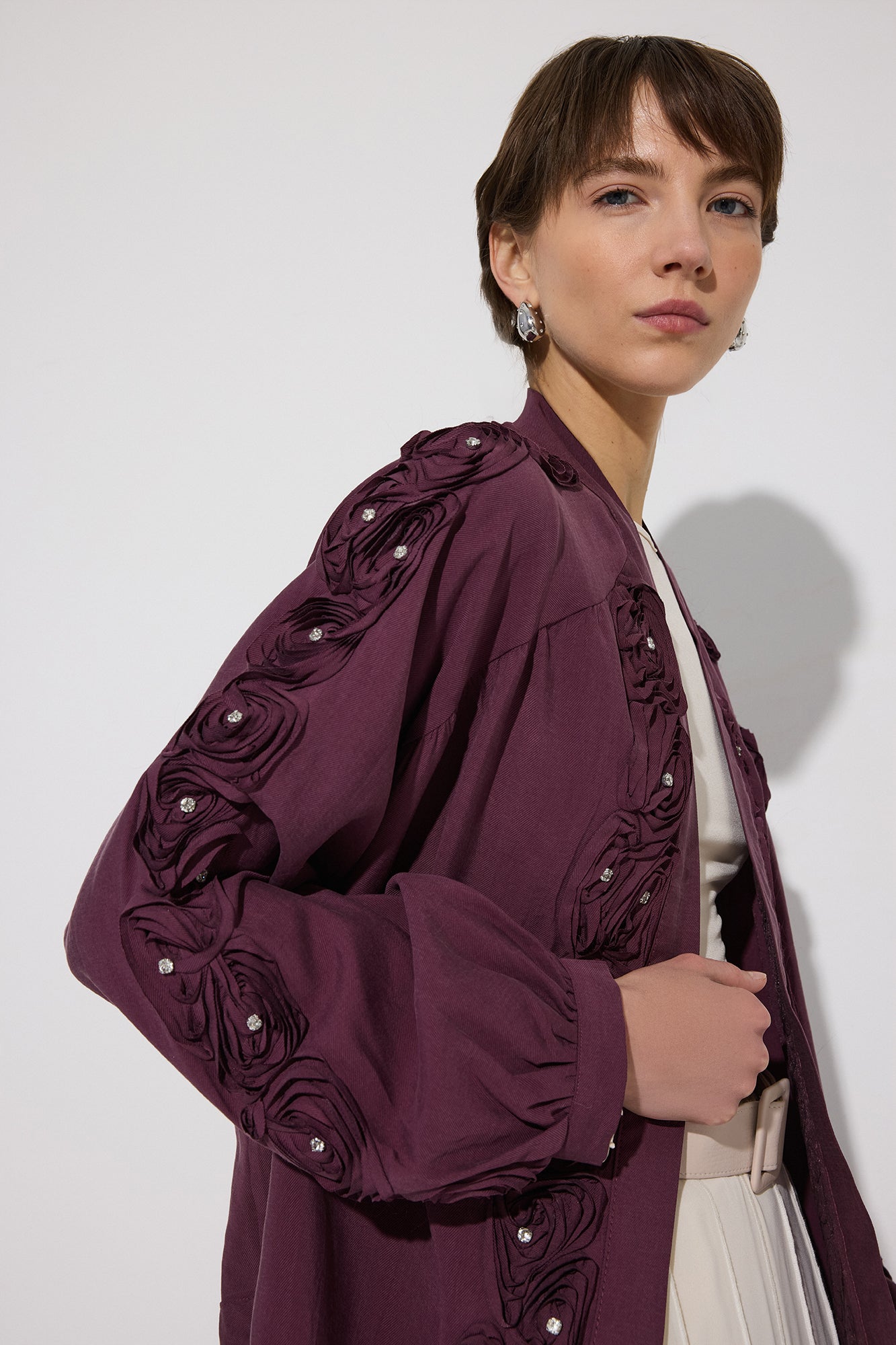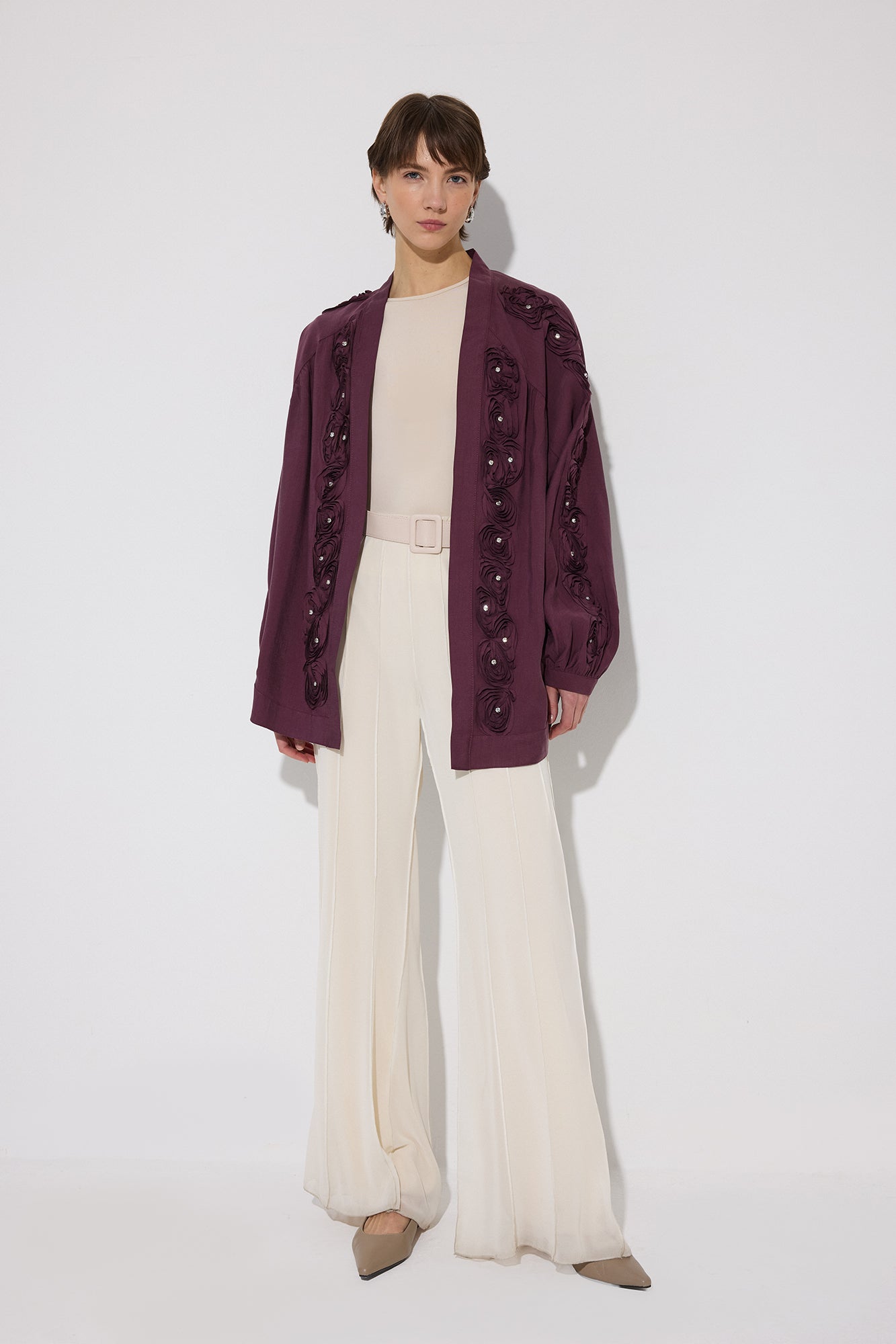 KIMONO WITH ROSE EMBELLISHMENT AND STONES