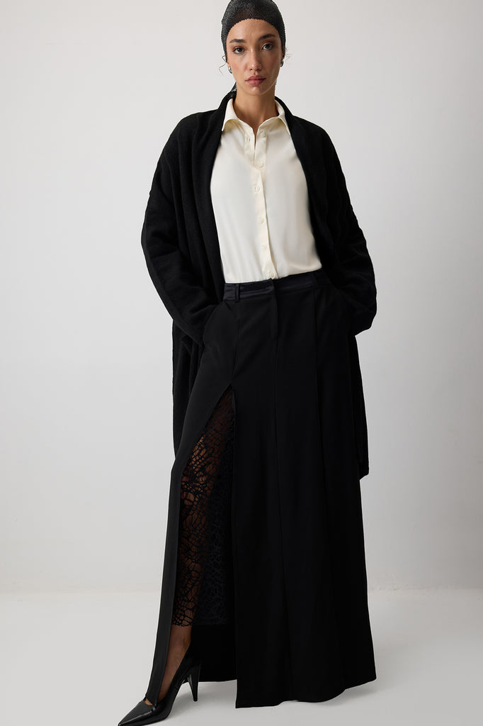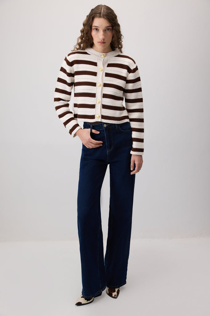 STRIPED LONG CARDIGAN WITH GOLD BUTTONS