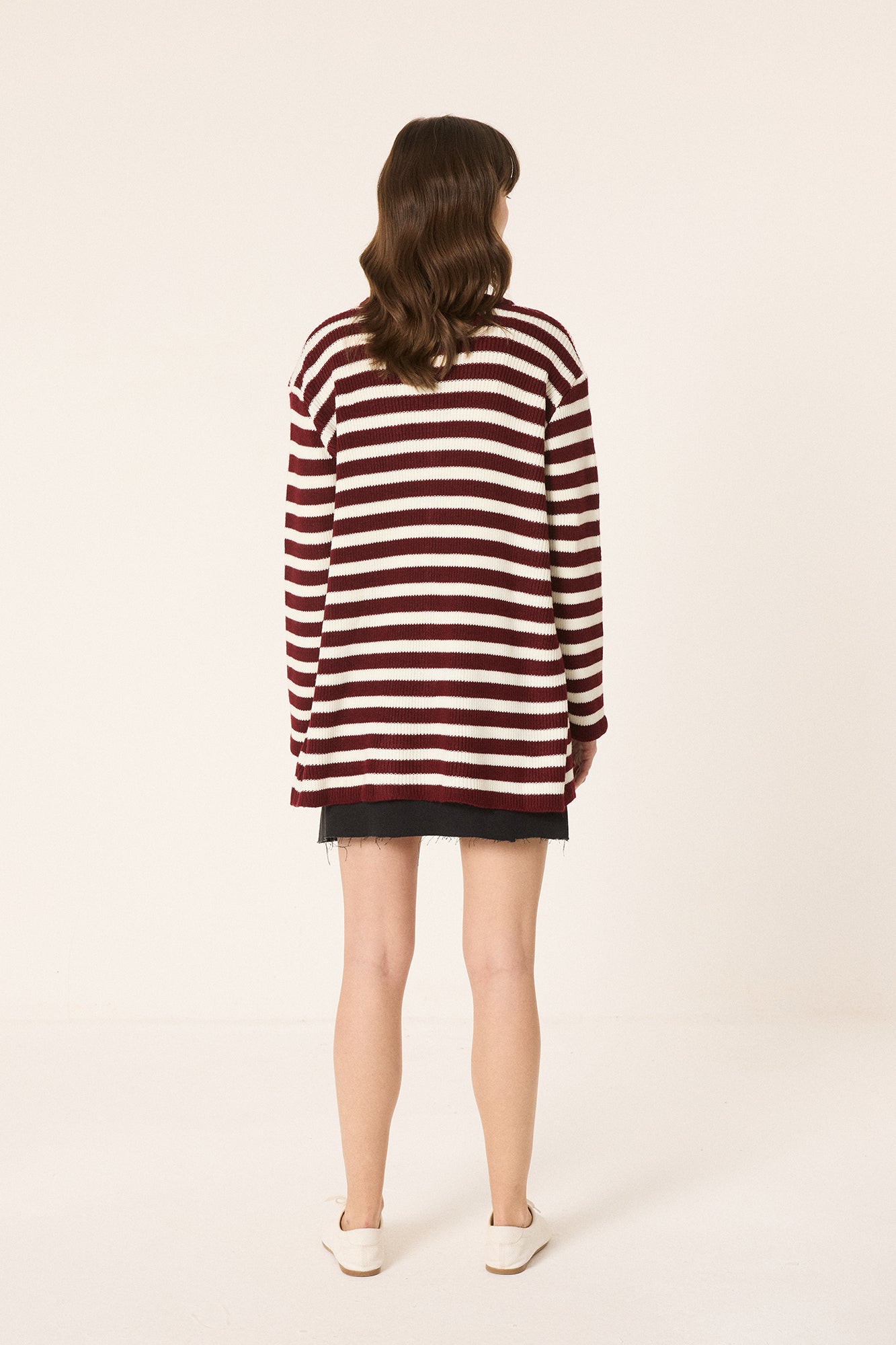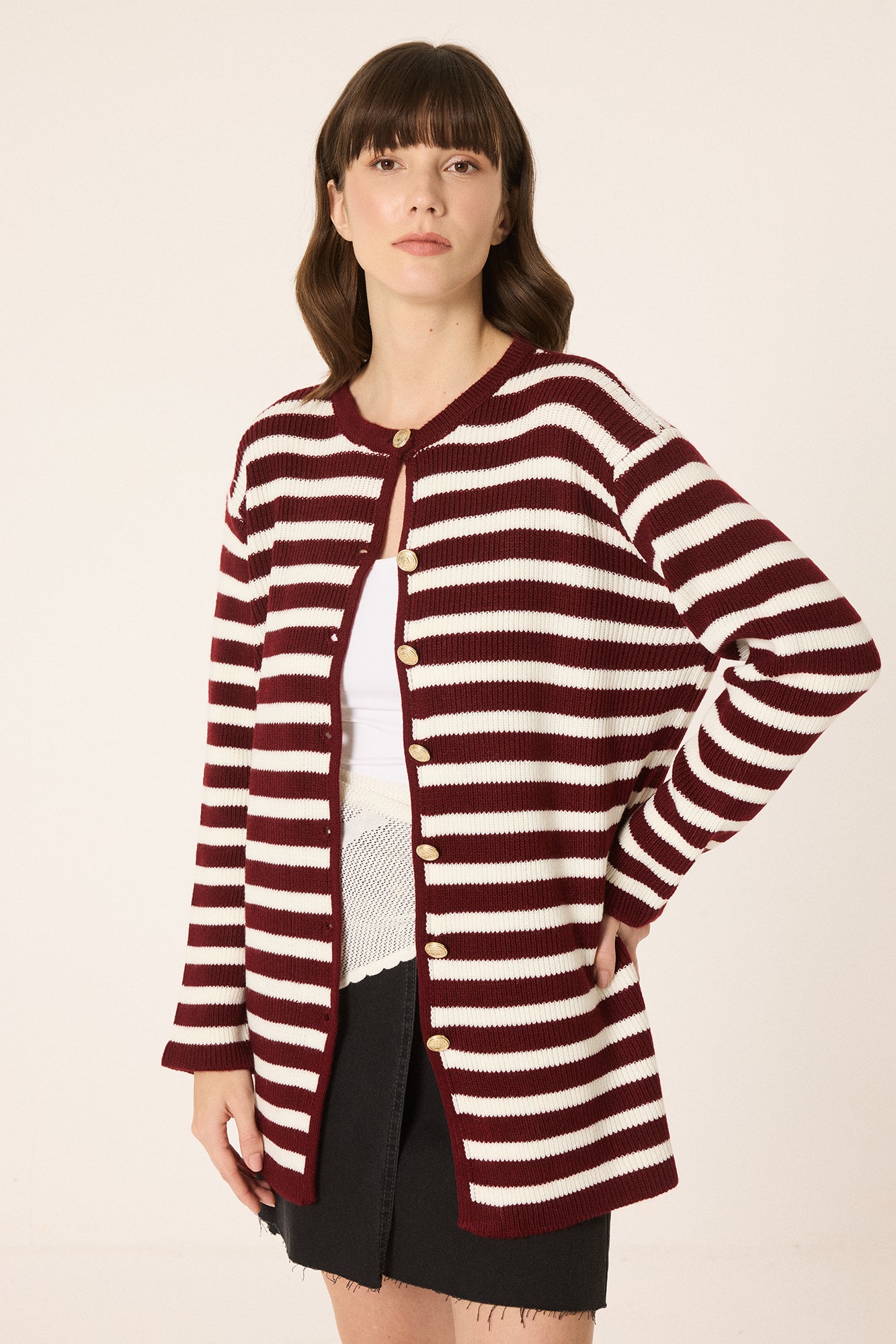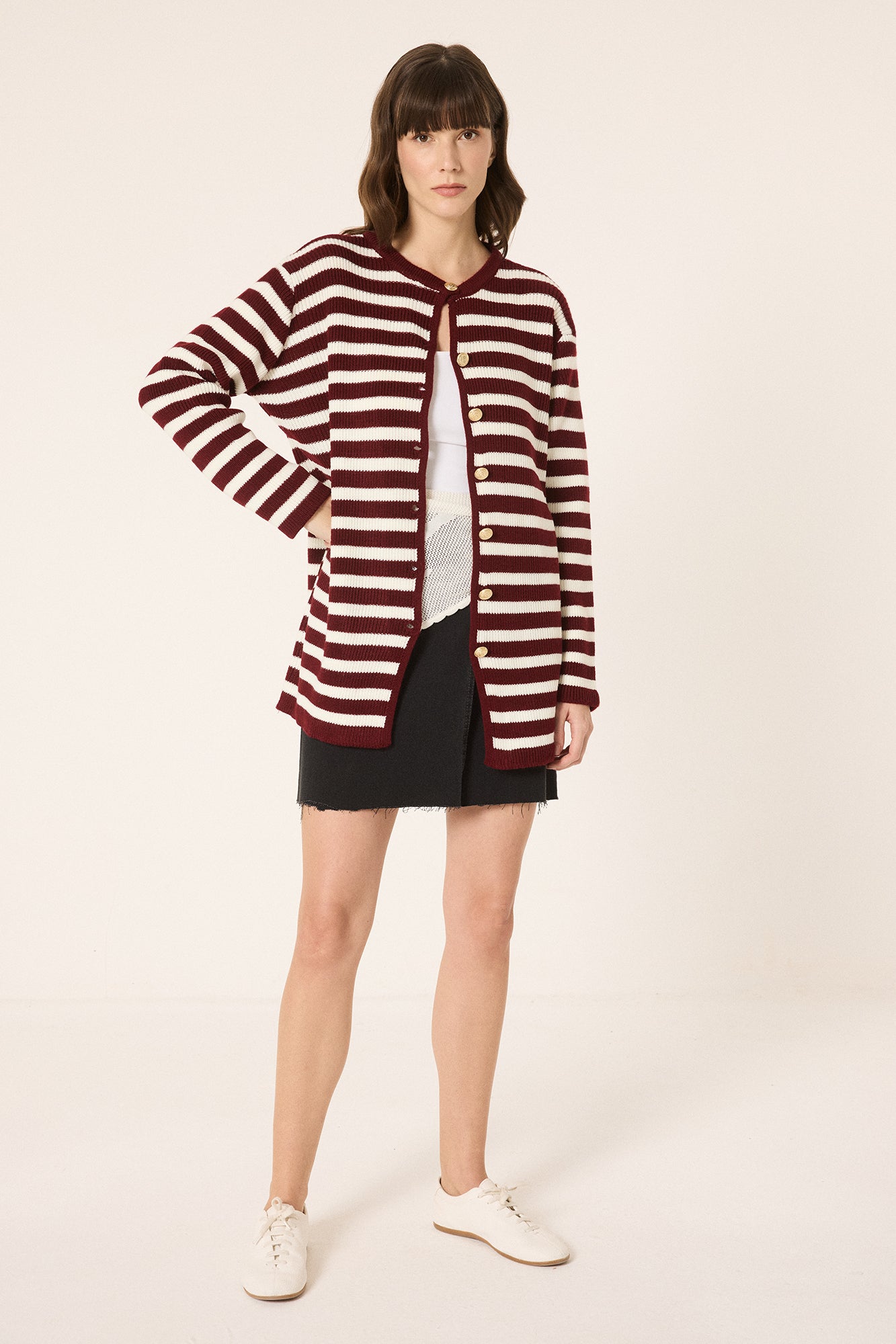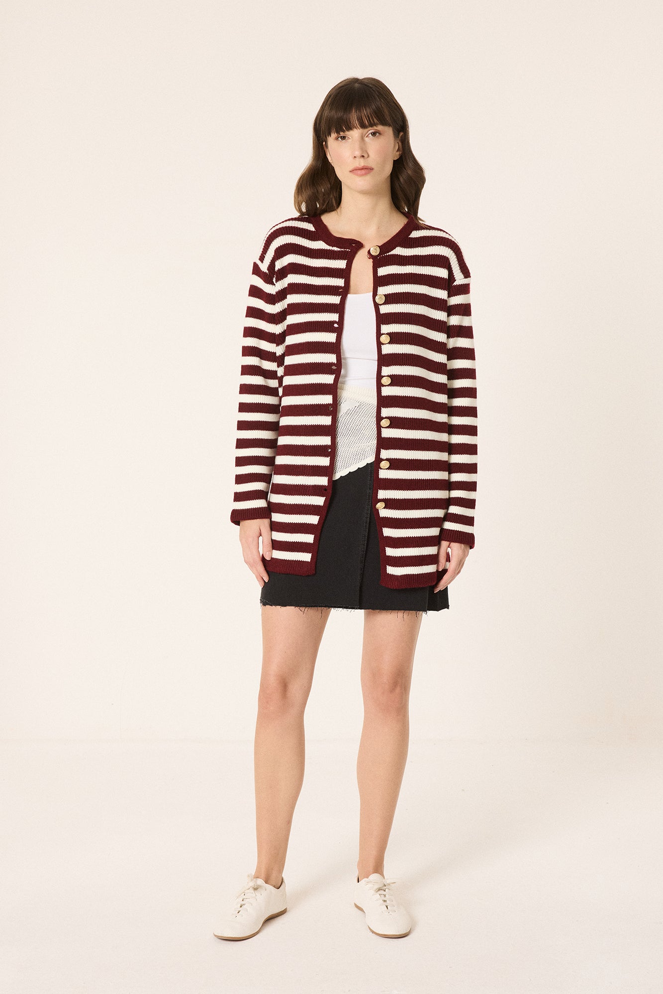 STRIPED LONG CARDIGAN WITH GOLD BUTTONS