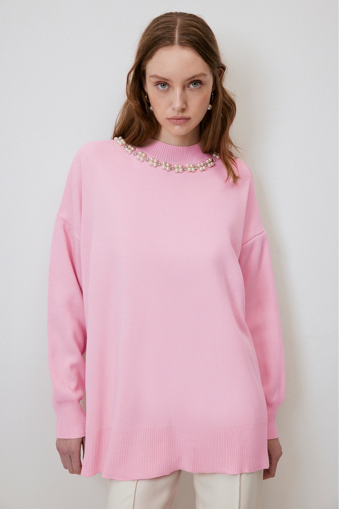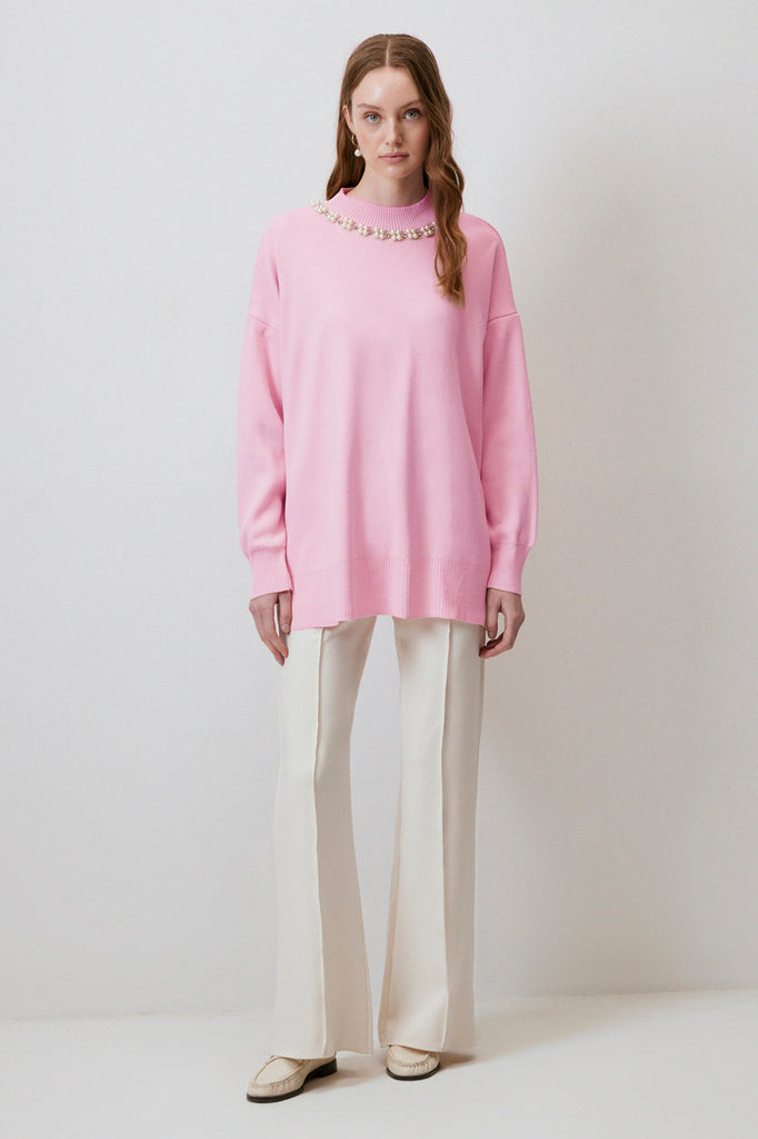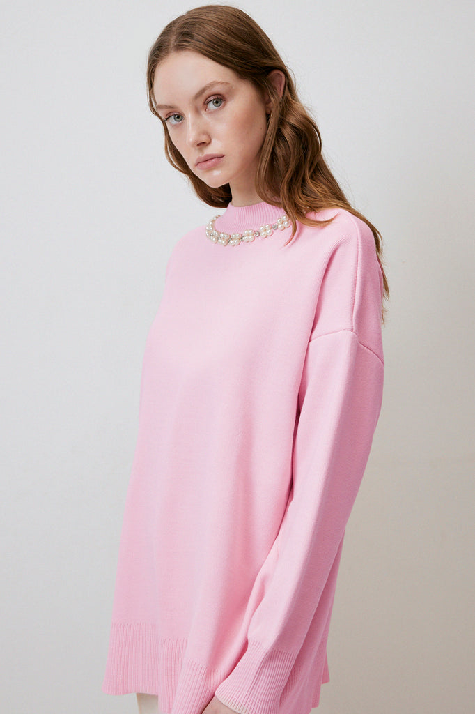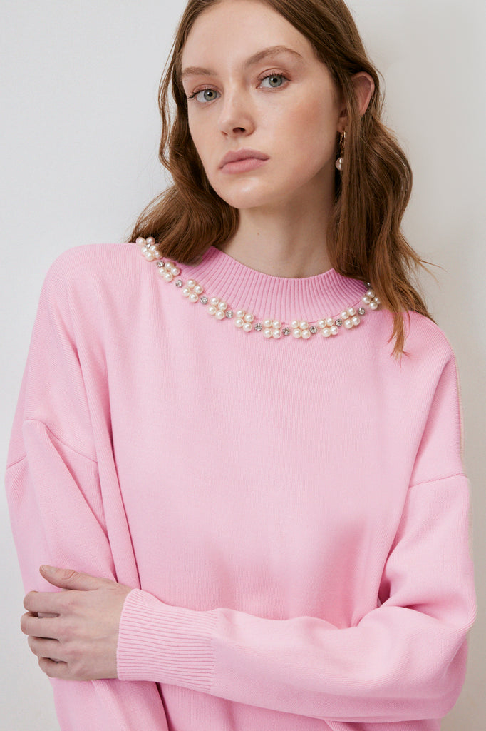 SWEATER WITH PEARL COLLAR