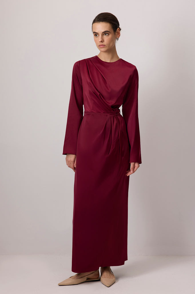 STONE EMBROIDERED BALLOON SLEEVED DRESS