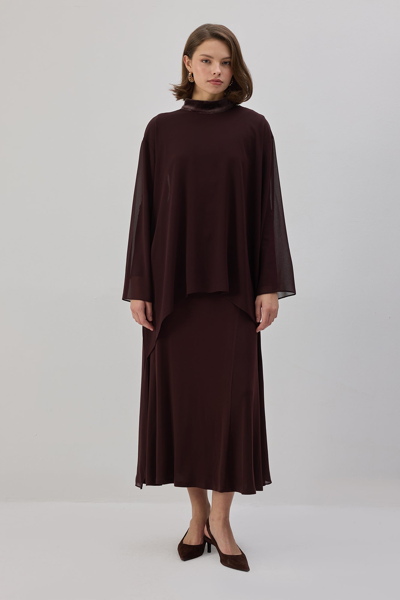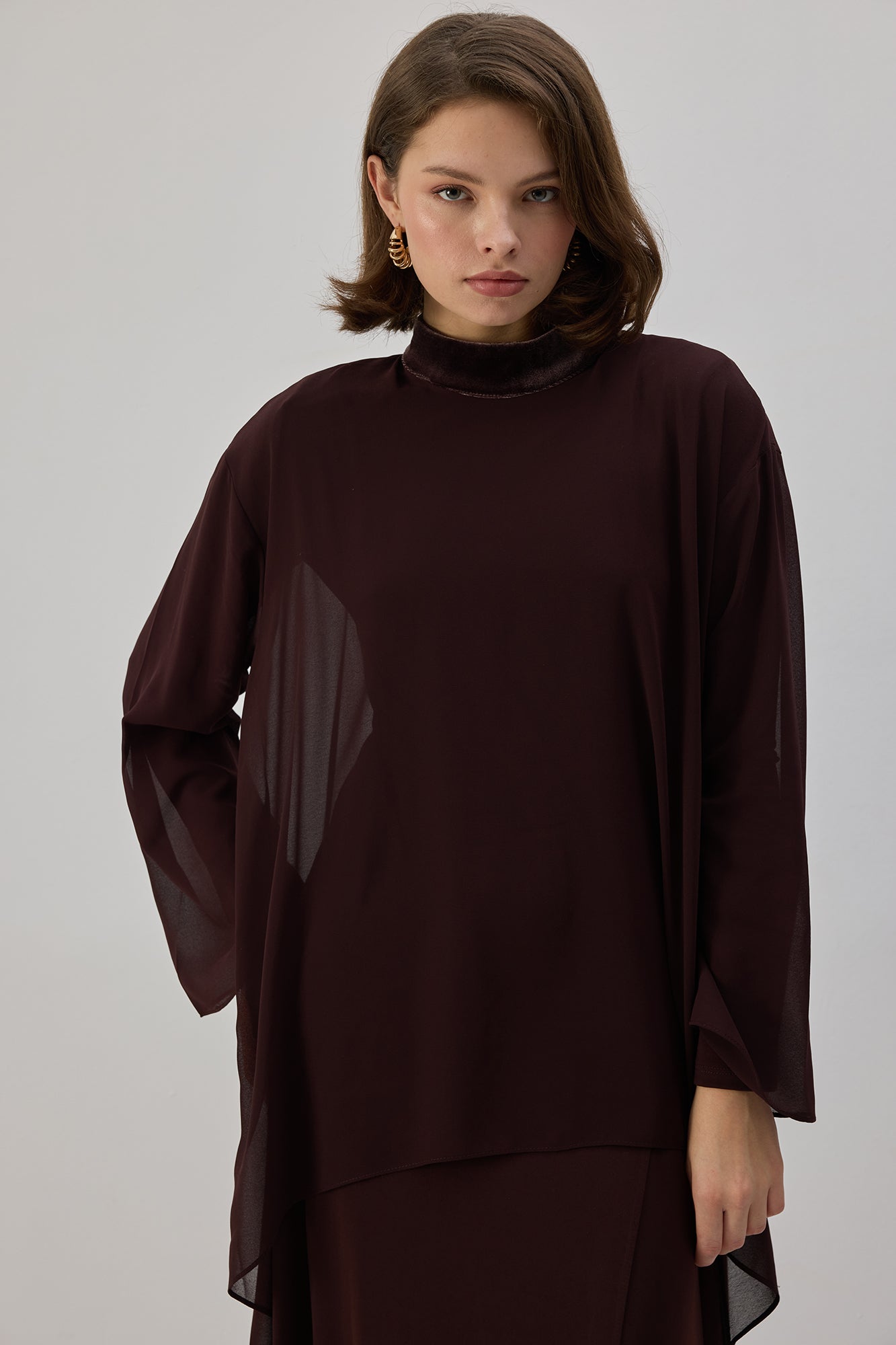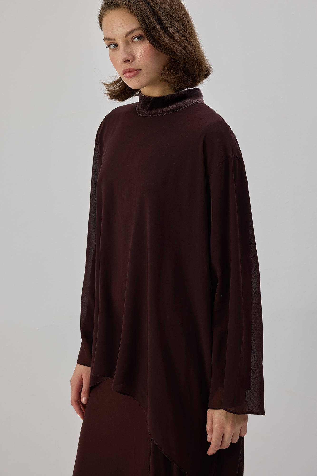VELVET DETAILED CHIFFON TUNIC