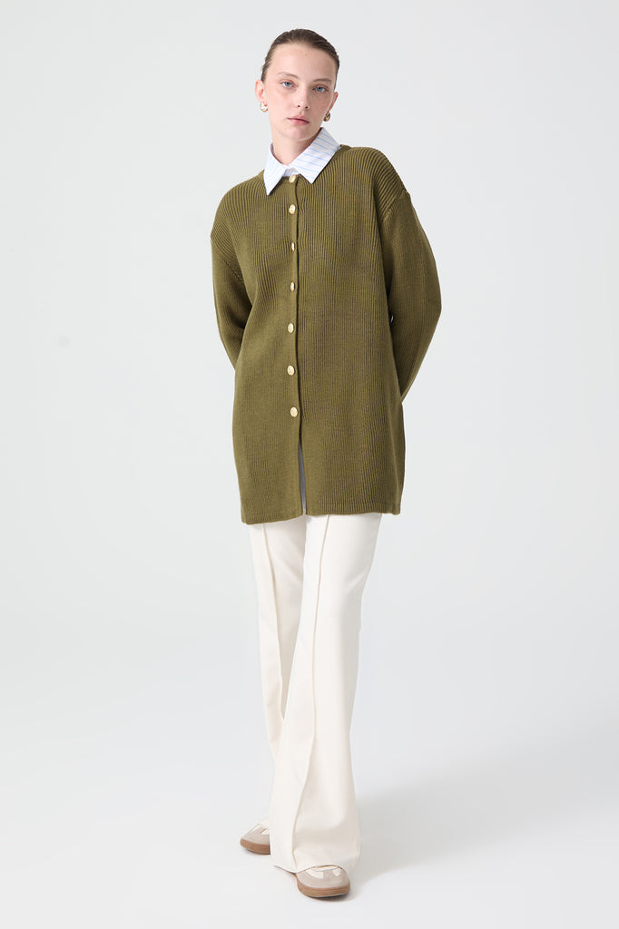 WIDE COLLAR CREPE CARDIGAM