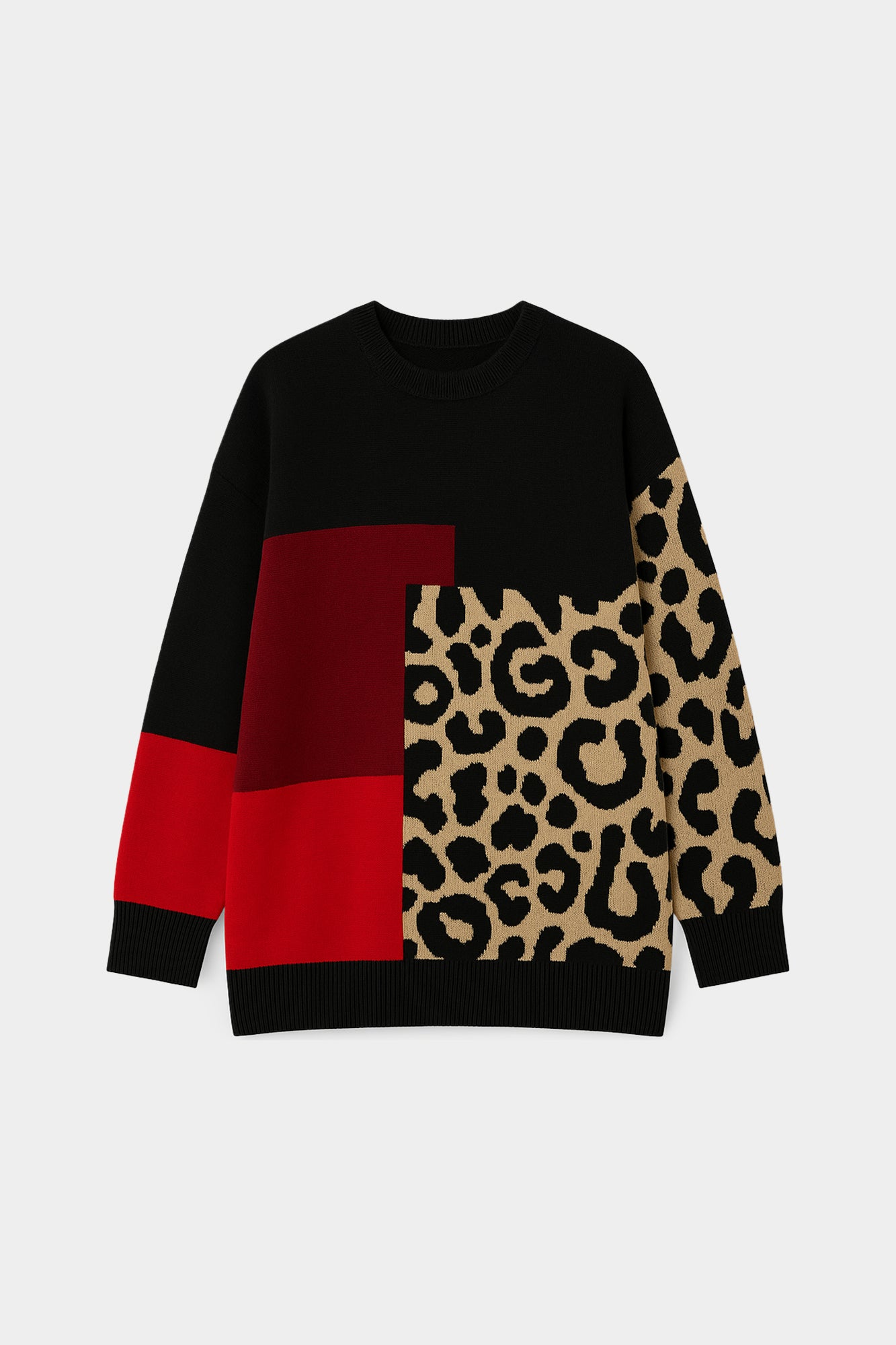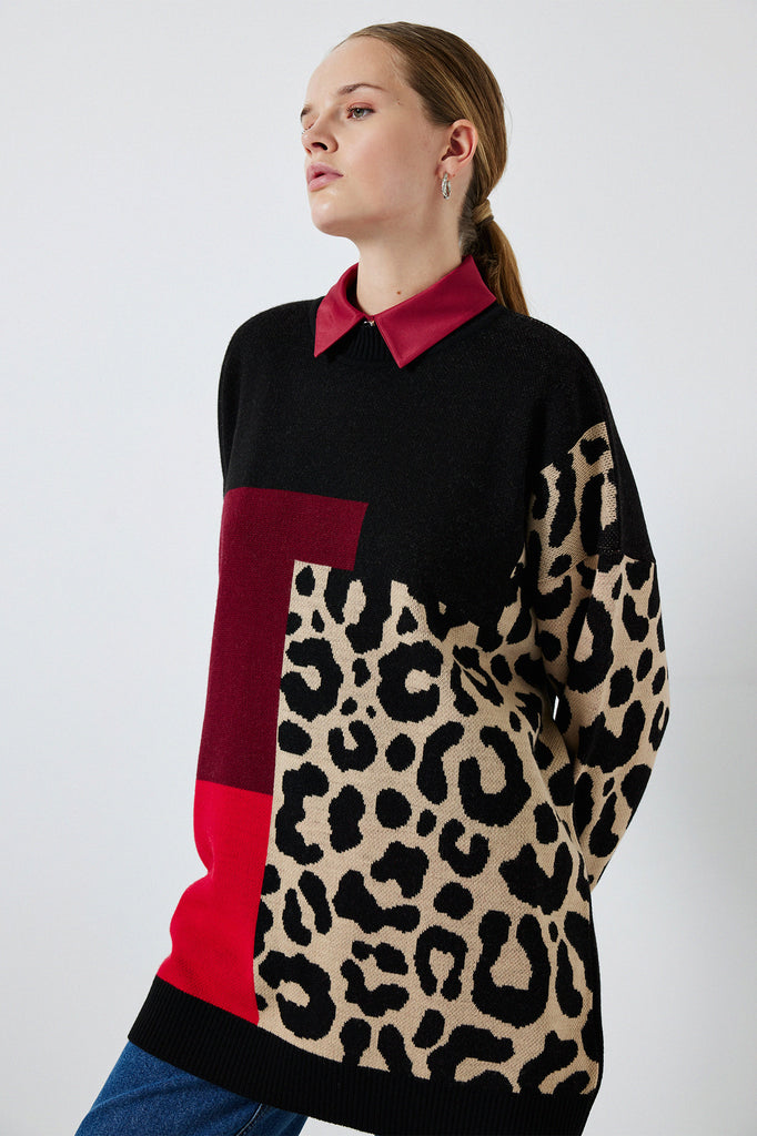 LEOPARD BLOCK PATTERNED KNIT TUNIC
