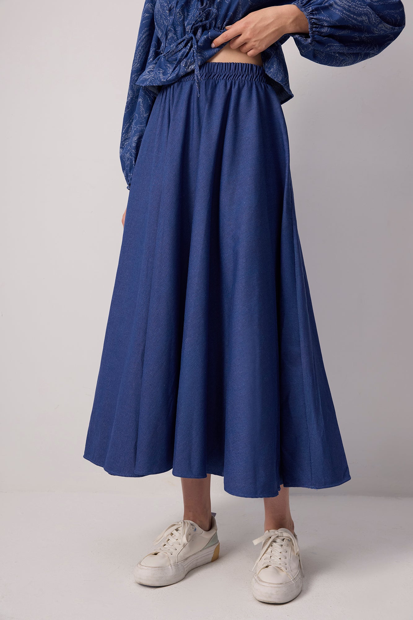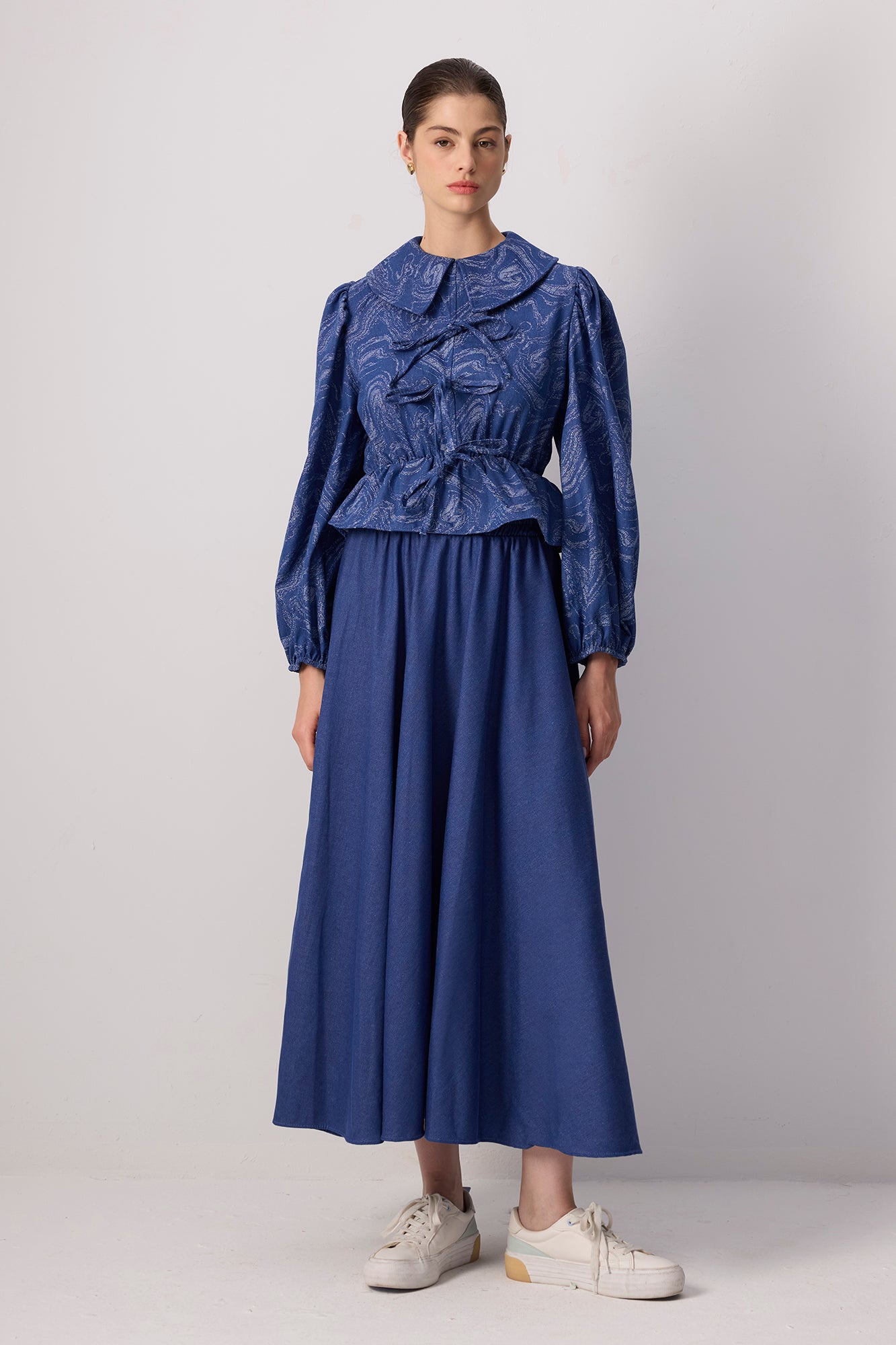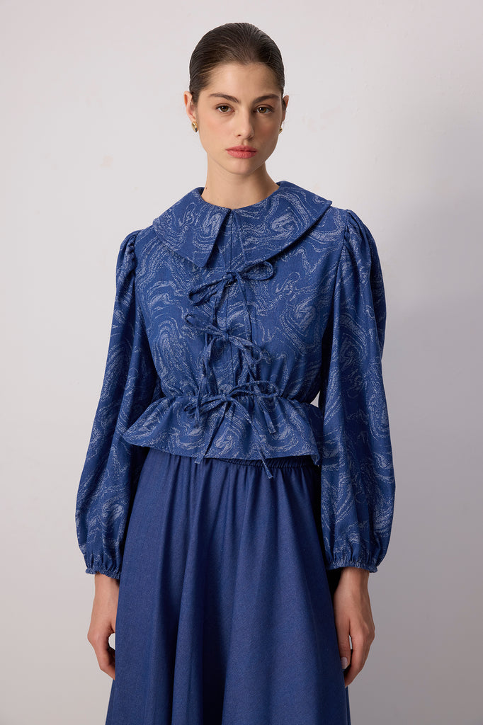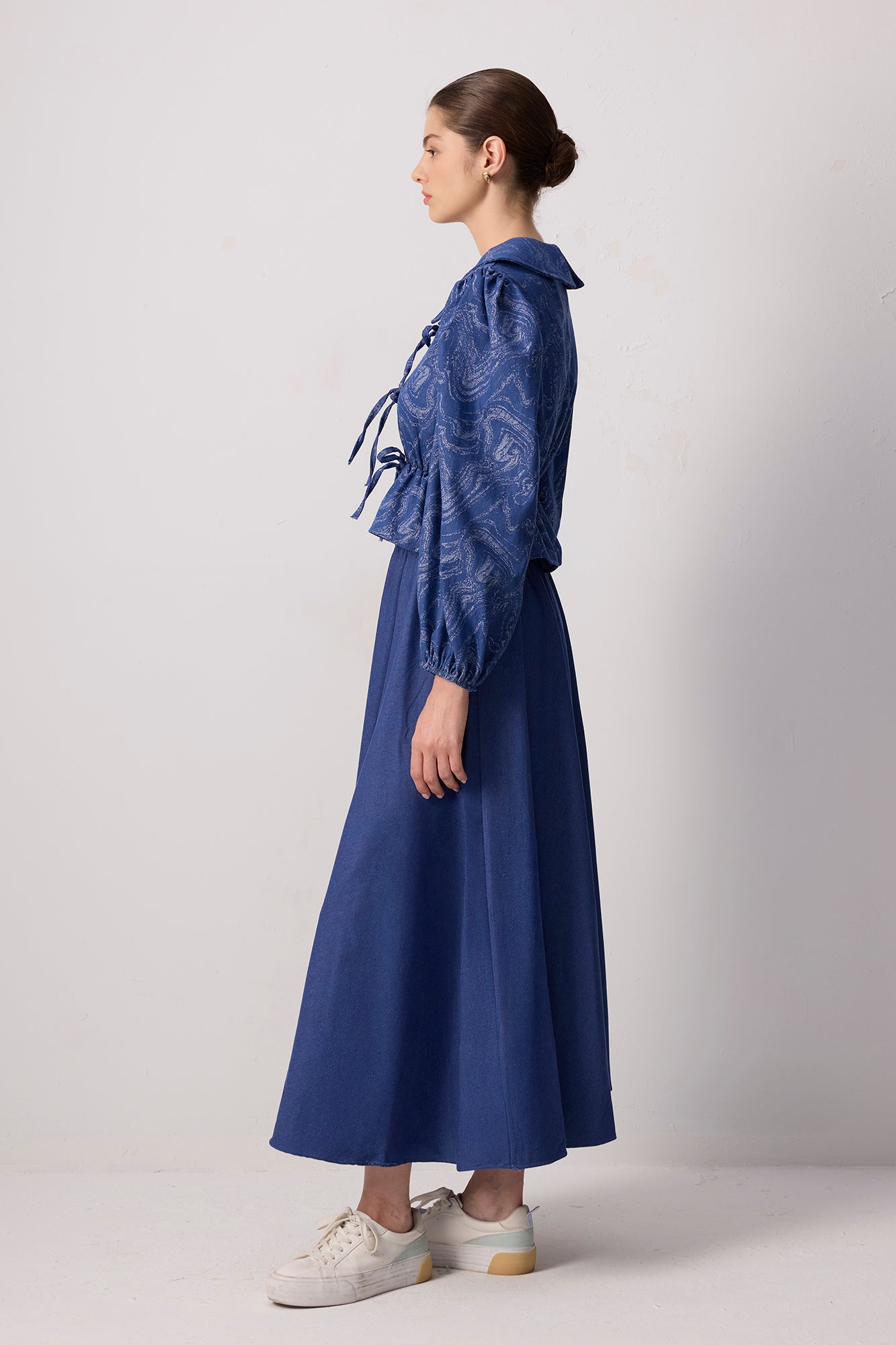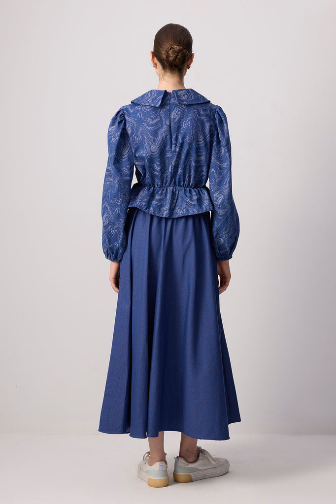 PATTERNED DENIM SKIRT TUNIC SET